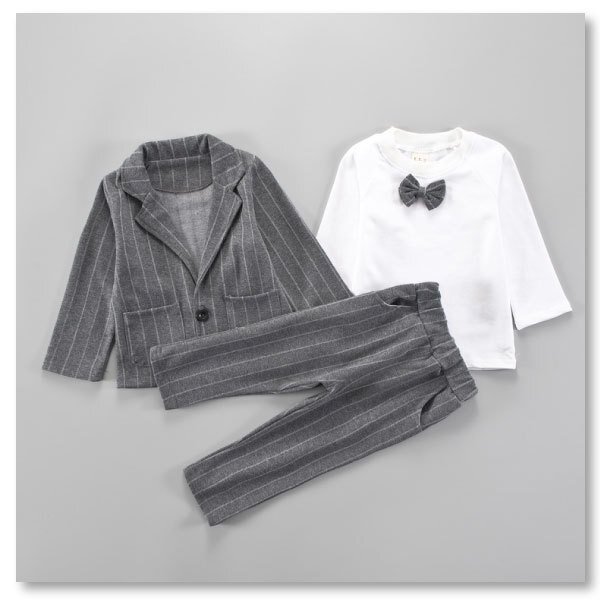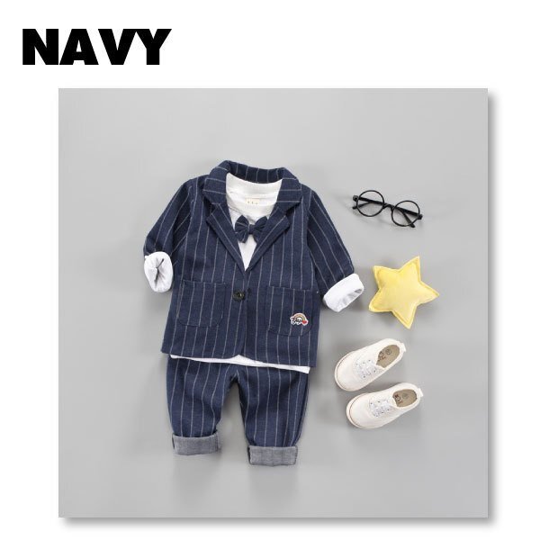 | ☆キッズ フォーマル 3点セット ※ご購入されましたらオーダーフォームにご希望のカラーとサイズをご入力ください。 カラー:ネイビー,ブラック,グレー サイズ:80(S),90(M),100(L) -*-*-*-*-*-*-*- 【商品名】 キッズ フォーマル 3点セット 【素材】 コットン95%、ポリウレタン5% 【サイズ】 ■80(S):上着丈36cm バスト52cm ウェスト38cm 下着丈48cm ■90(M):上着丈38cm バスト56cm ウェスト39cm 下着丈50cm ■100(L):上着丈40cm バスト58cm ウェスト40cm 下着丈52cm *海外商品です。1-3cmの誤差が生じる場合がございます。 【対象年齢】 1歳〜3歳 【カラー】 ■ネイビー ■ブラック ■グレー 【ポイント♪】 ■お子様のお洒落さと機能を重視したデザインで、結婚式、入園式、お祝いなどのフォーマルシーンはもちろん、発表会の衣装としても! ■伸縮性のある素材で元気な子も安心♪ ■着させやすく脱がせやすい素材だからお出かけ時にとっても楽な設計です★ | ||||