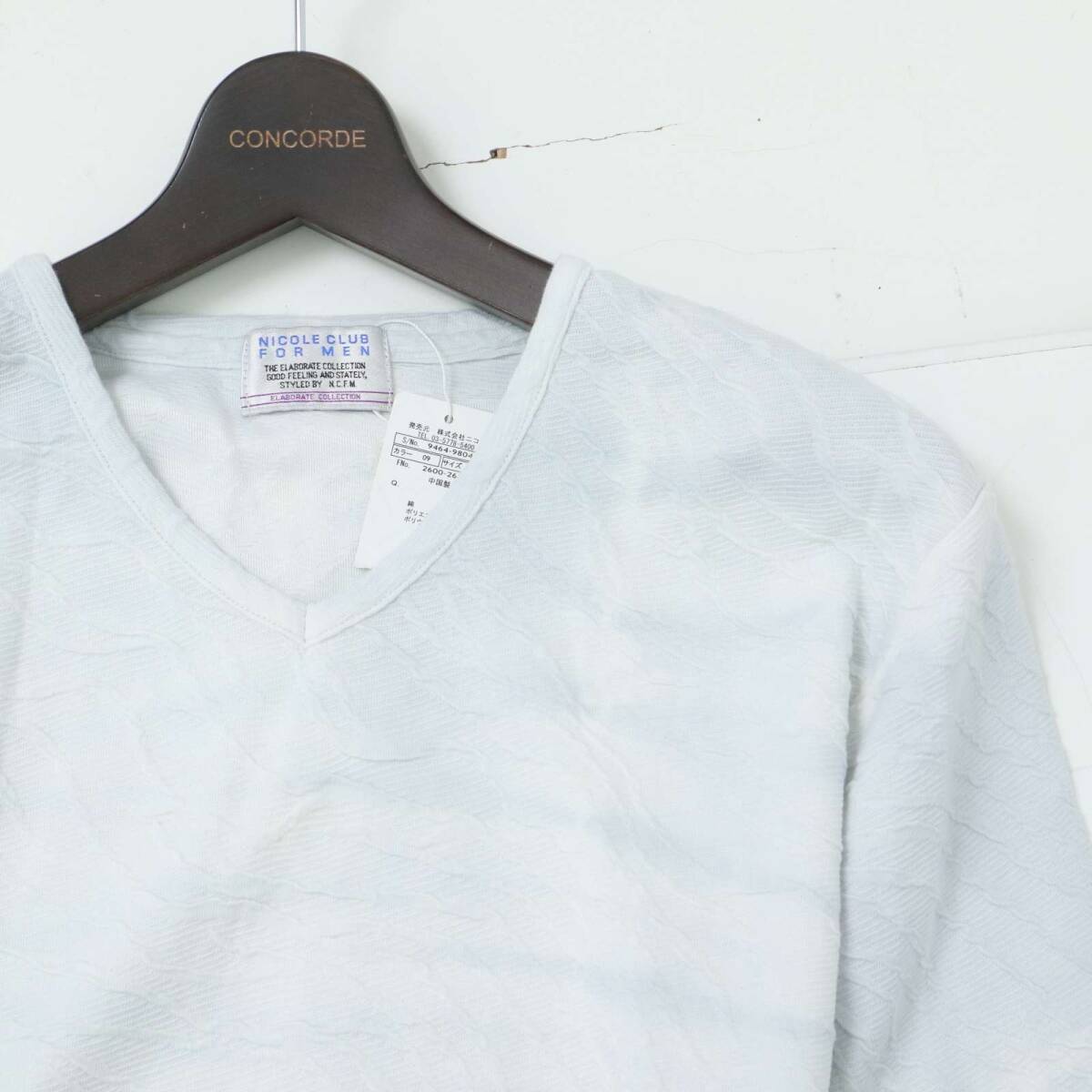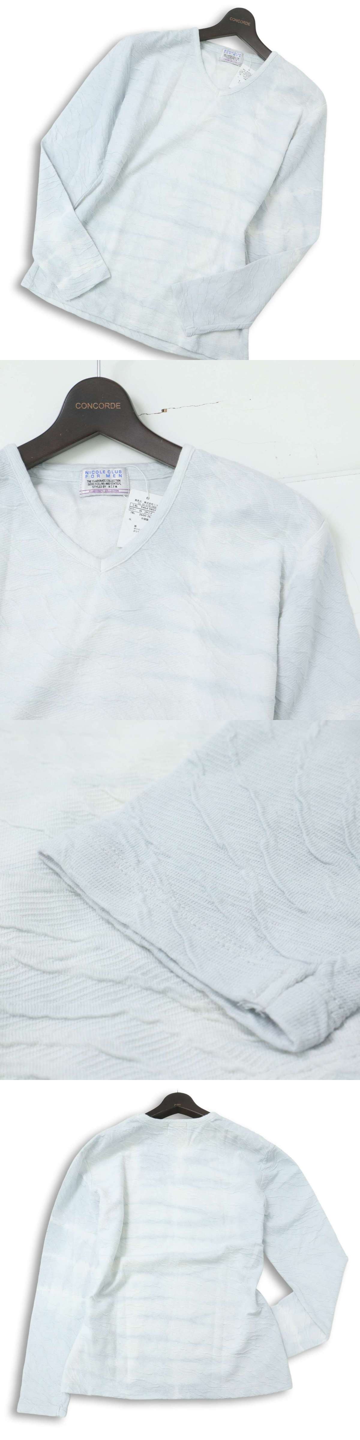 新品★ 未使用 NICOLE CLUB FOR MEN ニコルクラブ フォーメン ムラ染め 長袖 Vネック カットソー ロンTシャツ Sz.48 メンズ