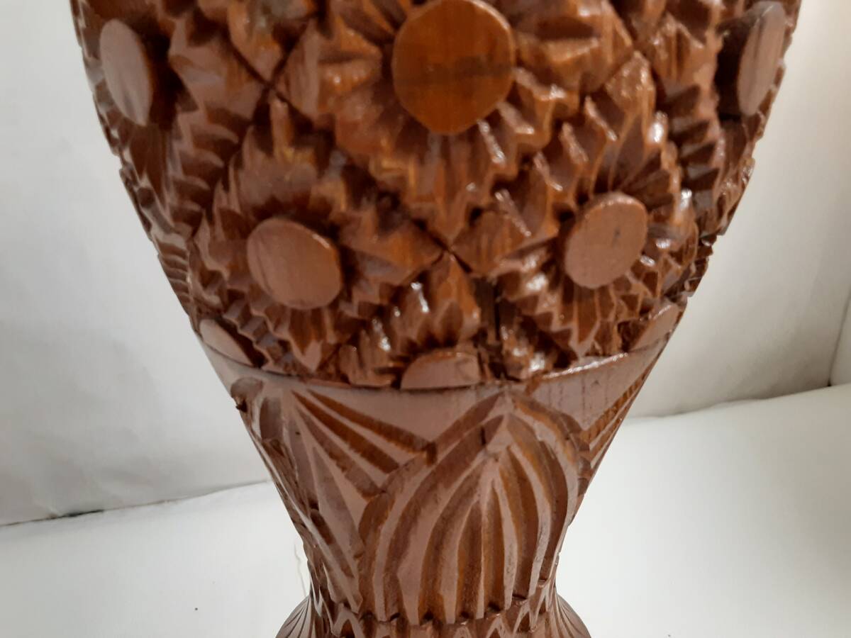 ※佐川急便の場合、離島など別途中継手数料がかかる地域が御座います。 その場合はお振込みを追加でお願いする場合が御座います事、 事前にご了承の程、宜しくお願い致します。 [商品名] 1円スタート 【うぶだし】木彫 細密彫刻 花器 [サイズ] 高さ約50cm, 直径約14cm 重量約2.7kg [状態] USED品ですが キズ、汚れがあります。