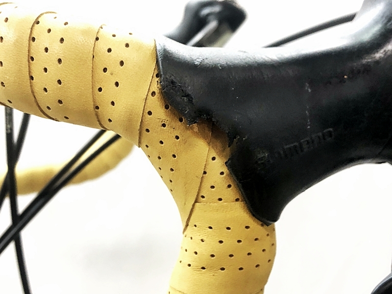 フレーム、フォーク、パーツ全体に多数のキズやサビがあります。STIブラケットカバーが劣化のため破れそうです。