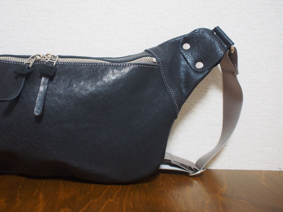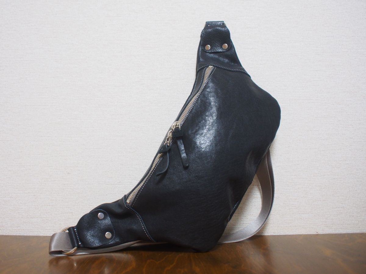 天然タンニン鞣しのプルアップレザーです。物理的な作業によってシワを強調させている特徴な革です。使い込んでいくうちにツヤ・味がでてきます。私たちが知っているかぎりこの革を使用しているところは、数少ないです。