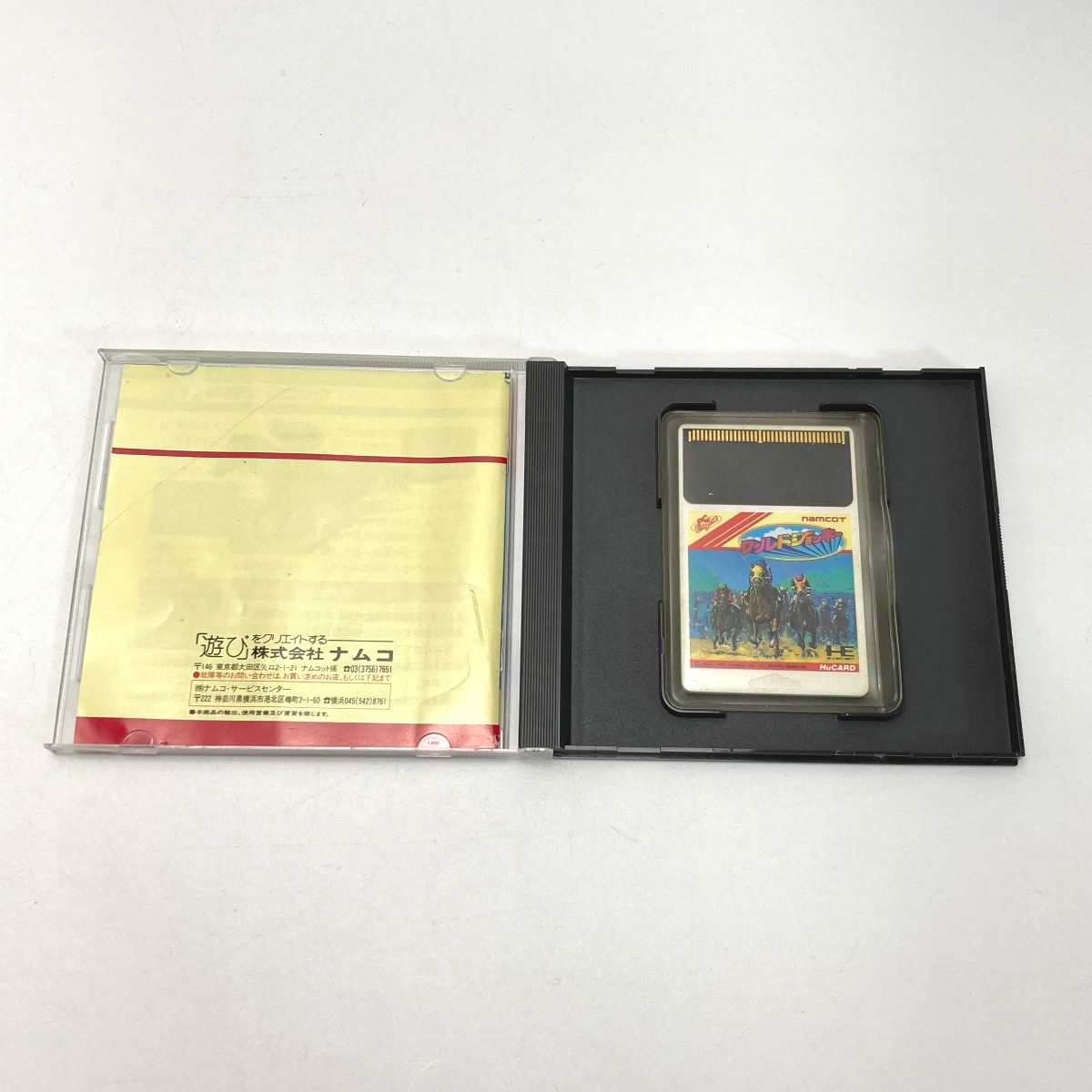 【商品名】1円スタート 中古 PCエンジン ナムコ ワールドジョッキー HuCARD ケース・取説付き ジャンク 全体的に状態が悪い