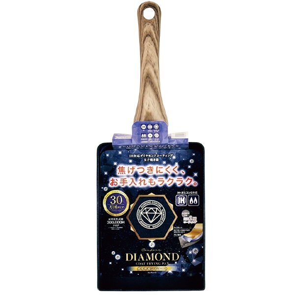 硬度No.1のダイヤモンド粒子を表面加工に使用し、高い耐久性を実現した、ダイヤモンドコーティング卵焼き用フライパン。