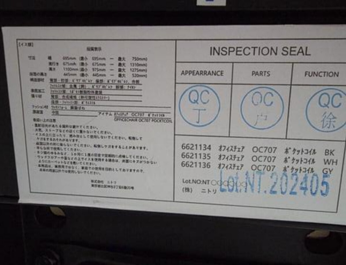 オフィスチェア ニトリ oc707 ポケットコイル デスクチェア 202405ロット メッシュ