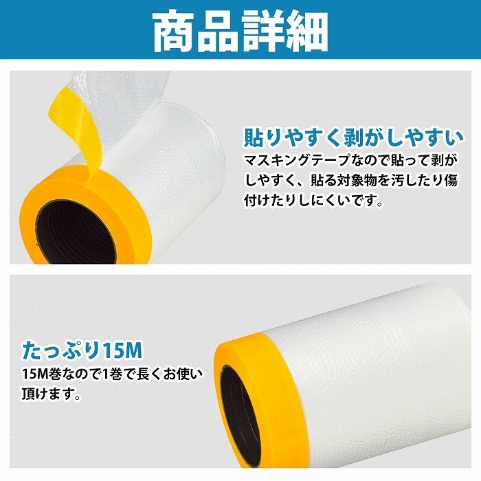 【新品即納】4本set『長さ15m×幅55CM』フィルム付 マスキングテープ 板金 塗装用 養生 保護 フィルム テープ 塗装 マスキング シール付き