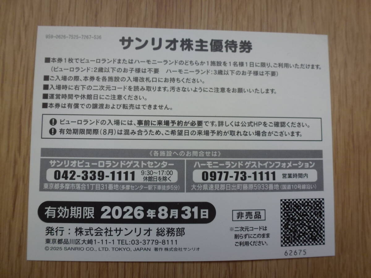 最新!!★サンリオ 株主優待券 枚 サンリオピューロランド 期限 2026年8月31日