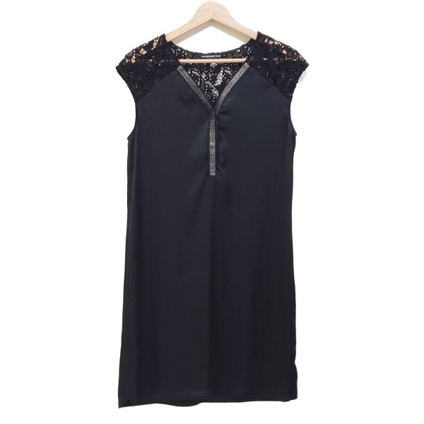 ヴィヴィアンタム VIVIENNE TAM サイズ0 XS - 黒 レディース Vネック/半袖/ミニ/レース/ラメ 美品 ワンピース