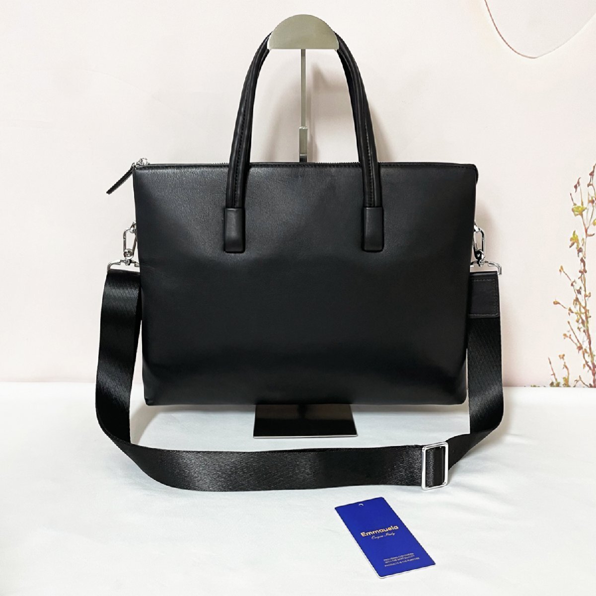 高級・ブリーフケース 定価12万◆Emmauela・イタリア・ミラノ発◆高品質牛革 レザー 薄型 ビジネスバッグ 2WAY 肩掛け フォーマル 通勤 メンズ