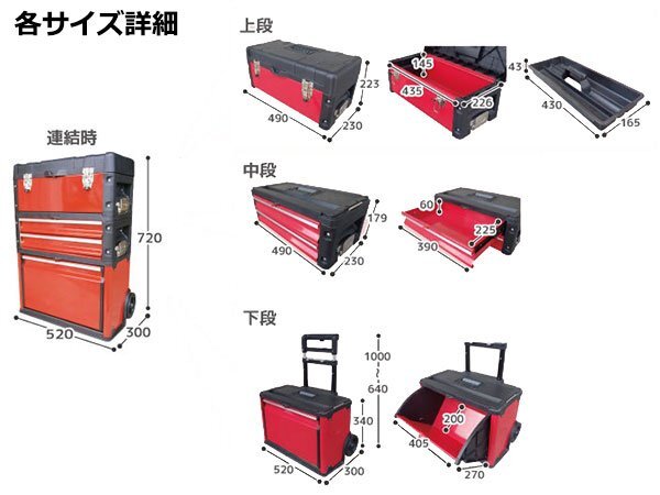 3つのツールボックスがひとつになった大型ツールボックスです。
