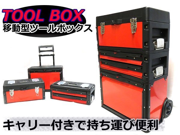 【新品即納】分割組立 3段構成 ツールボックスキャリー キャスター付き 工具箱 キャビネット ハンドツール ツールステーション