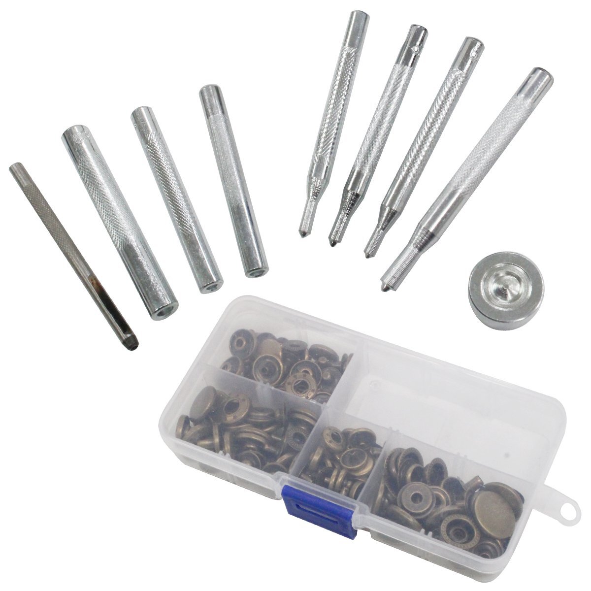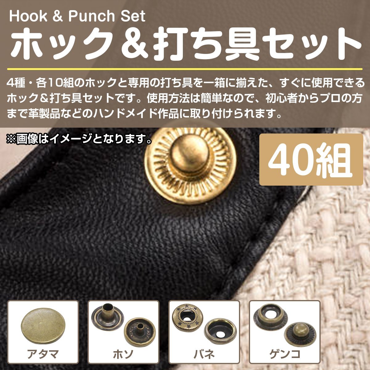 【送料無料】バネホック ボタン 4種 各10個 40組セット レザークラフト 打ち具 10mm/12mm/15mm/17mm ハンドメイド ジャンパーホック 革