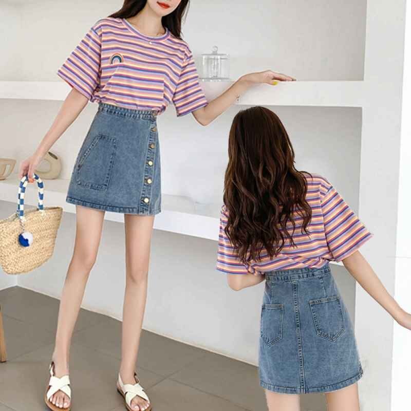 便利な前後ポケット付き、飽きのこないシンプルな台形デニムスカート。カジュアルなトップスでも、ガーリーなトップスでも合う万能なスカートです。