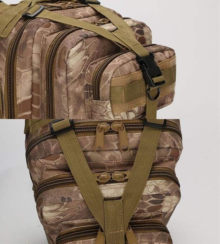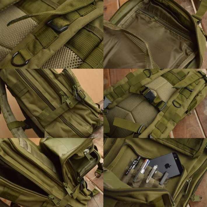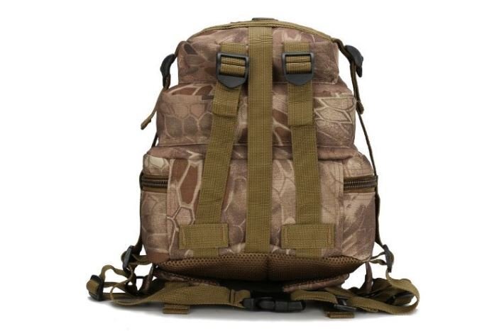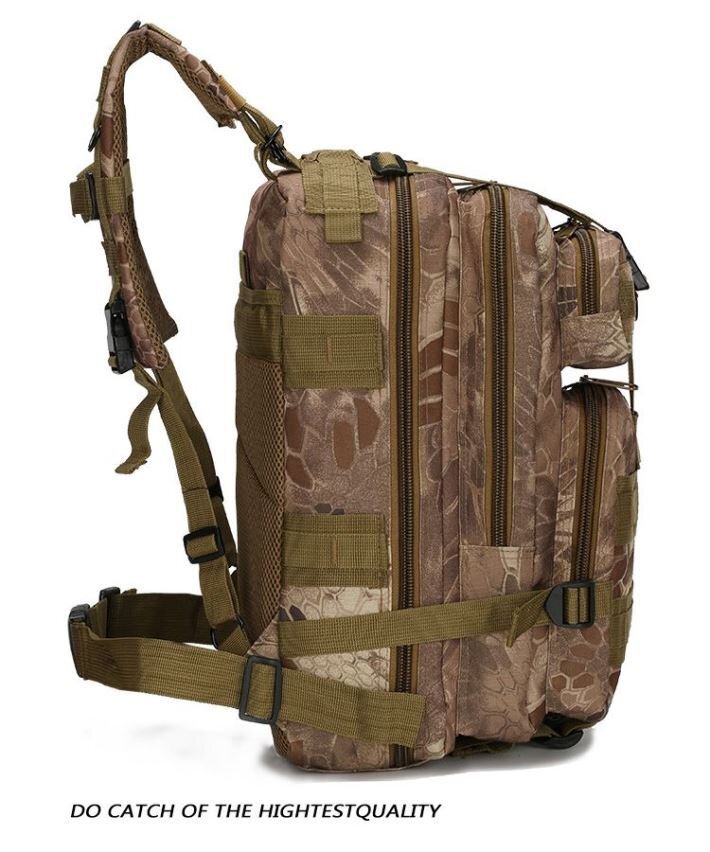 The large main compartment features a zippered pouch, mesh pocket and is hydration bladder compatible, the pack also has three additional pockets and storage compartments. The large storage options make the pack ideal for carrying gear or filling it with your entire Bug Out Bag Supplies. For extra comfort, the pack has been equipped with padded back and shoulder straps with breathable mesh backing.