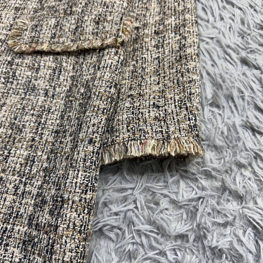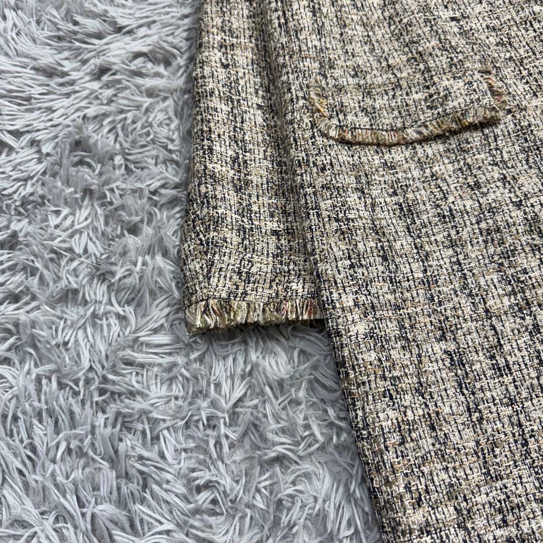 複数色の糸を織り交ぜた表情豊かなツイードは、軽やかさと上品さを兼ね備え、秋冬のスタイリングに華やかさをプラスしてくれます。