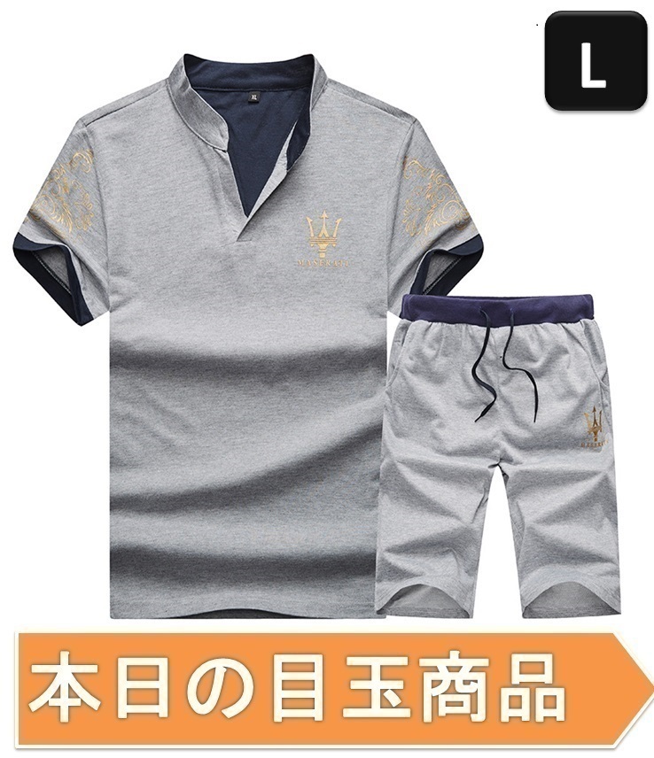 ☆今日の目玉商品☆ジャージ 上下 セット 半袖 部屋着 ルームウェア スポーツウェア セットアップ グレー Lサイズ 【241】