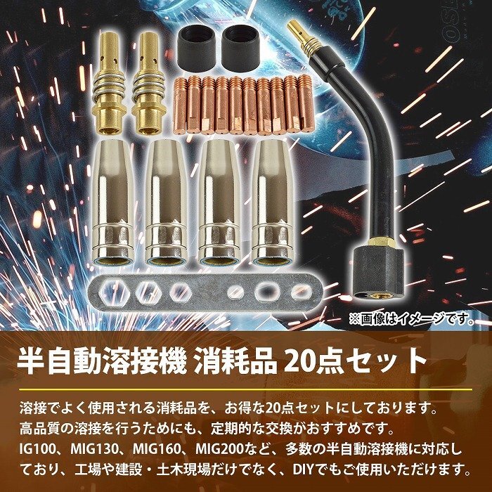 【送料250円】0.8mm 半自動溶接機 交換 消耗品 セット 20点 ボディ ノズル チップ トーチ MIG100 MIG130 MIG160 MIG200 100v 200v