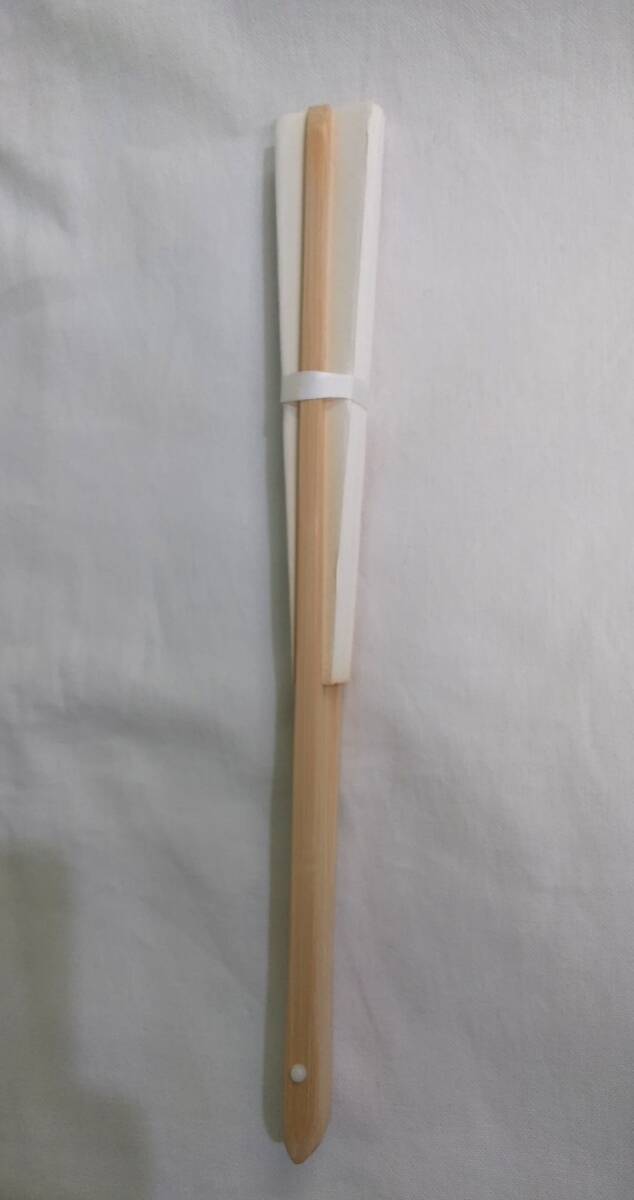 扇子は紙の帯で留めてあり、袋に入って居る状態です。