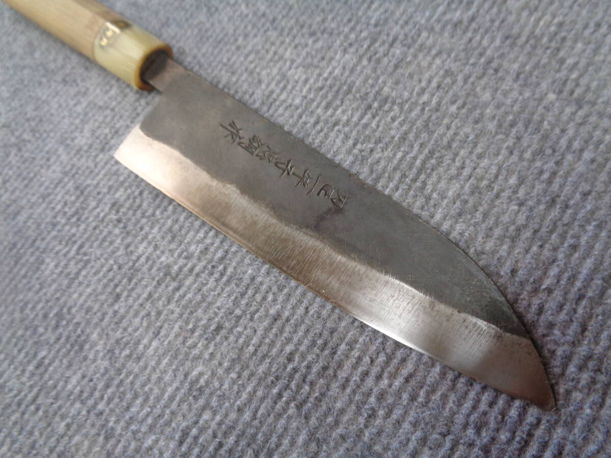 プロ 職人 中古包丁/ 刀匠 一竿子忠綱作 堺手打 和包丁 刃渡約17cm 黒打ち/ok