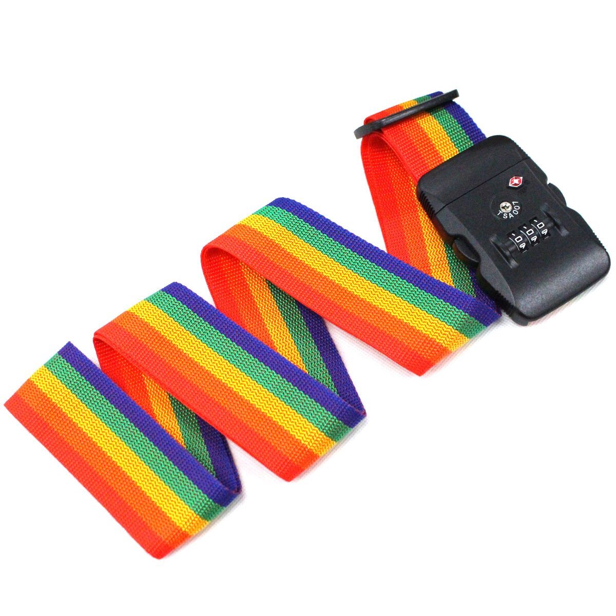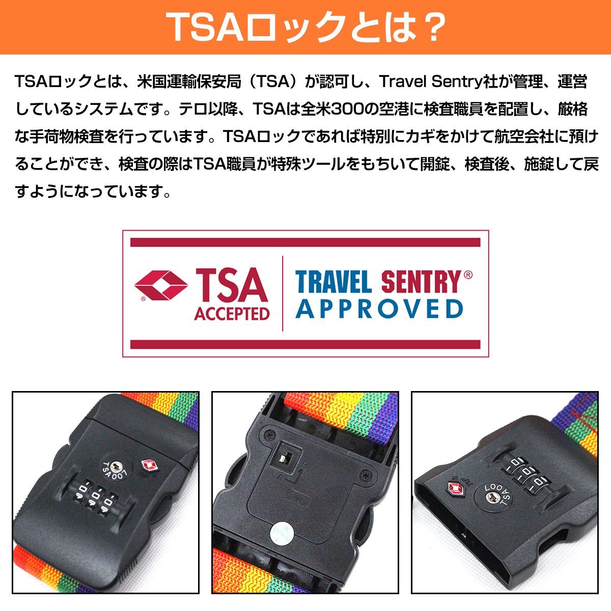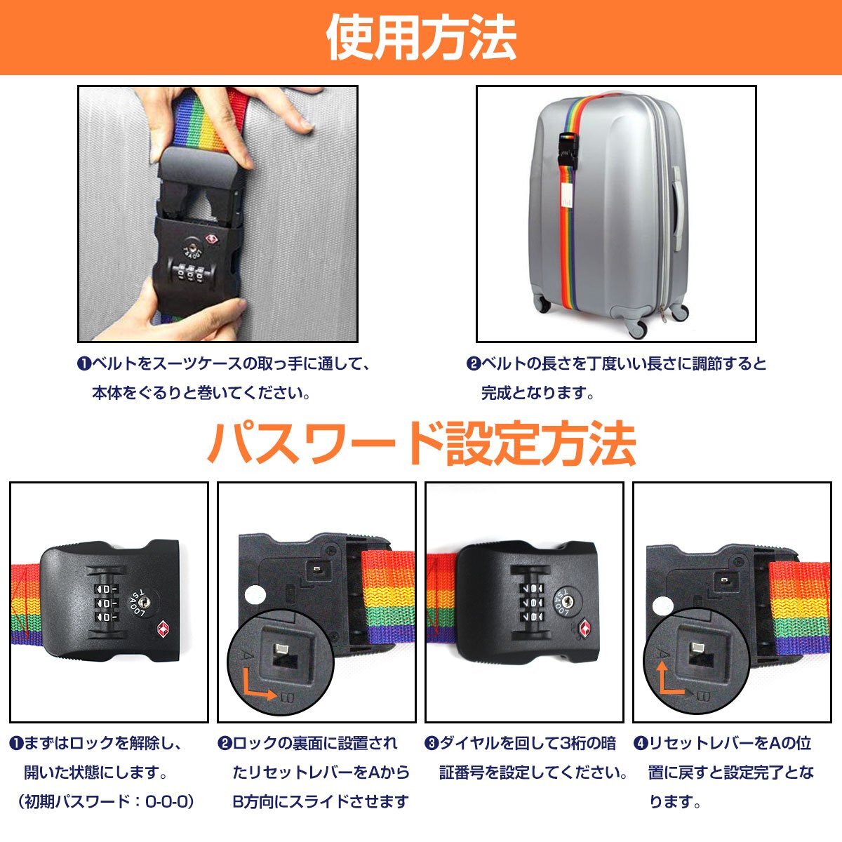 【送料250円】ダイヤル式 TSAロック スーツケース ベルト レインボー ネームタグ付 開閉防止 旅行 飛行機 取り違え 防止 荷物 海外 国際線