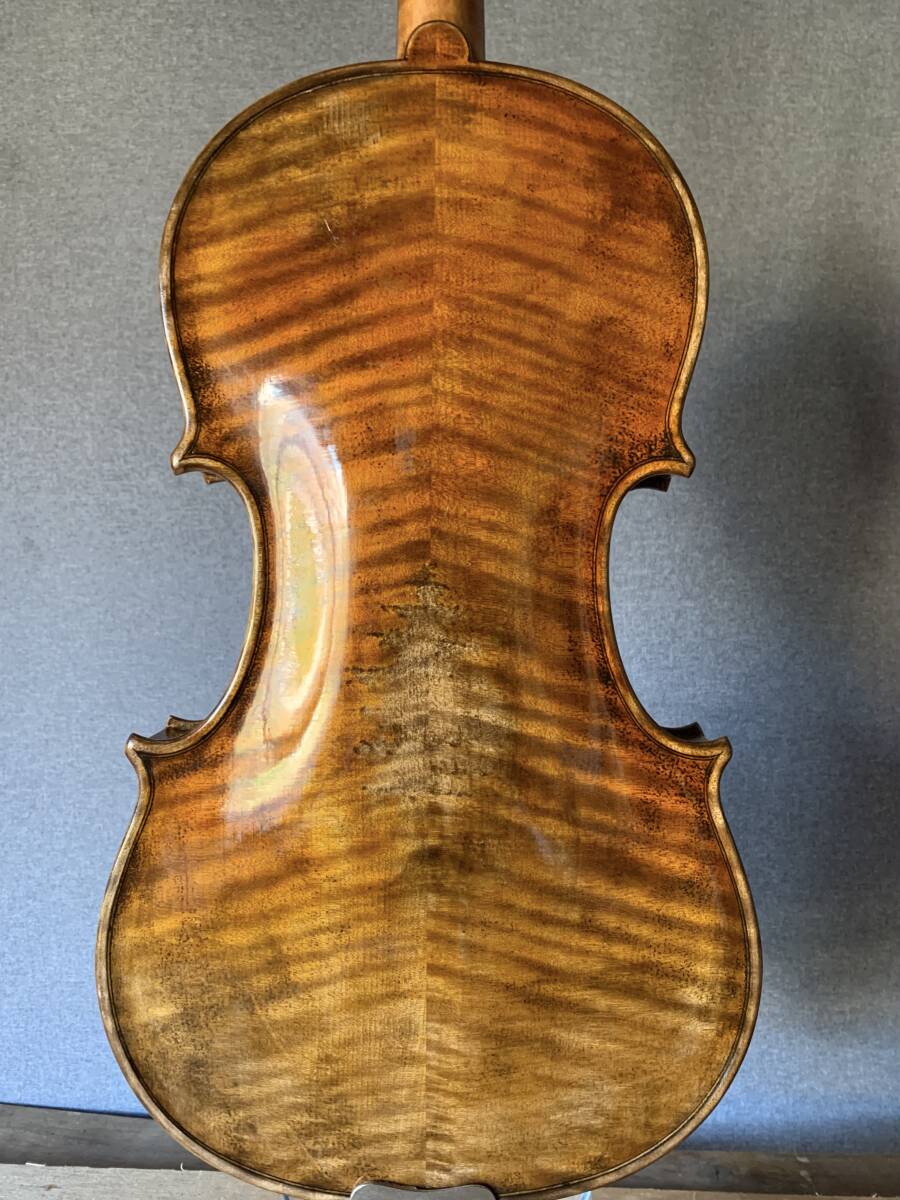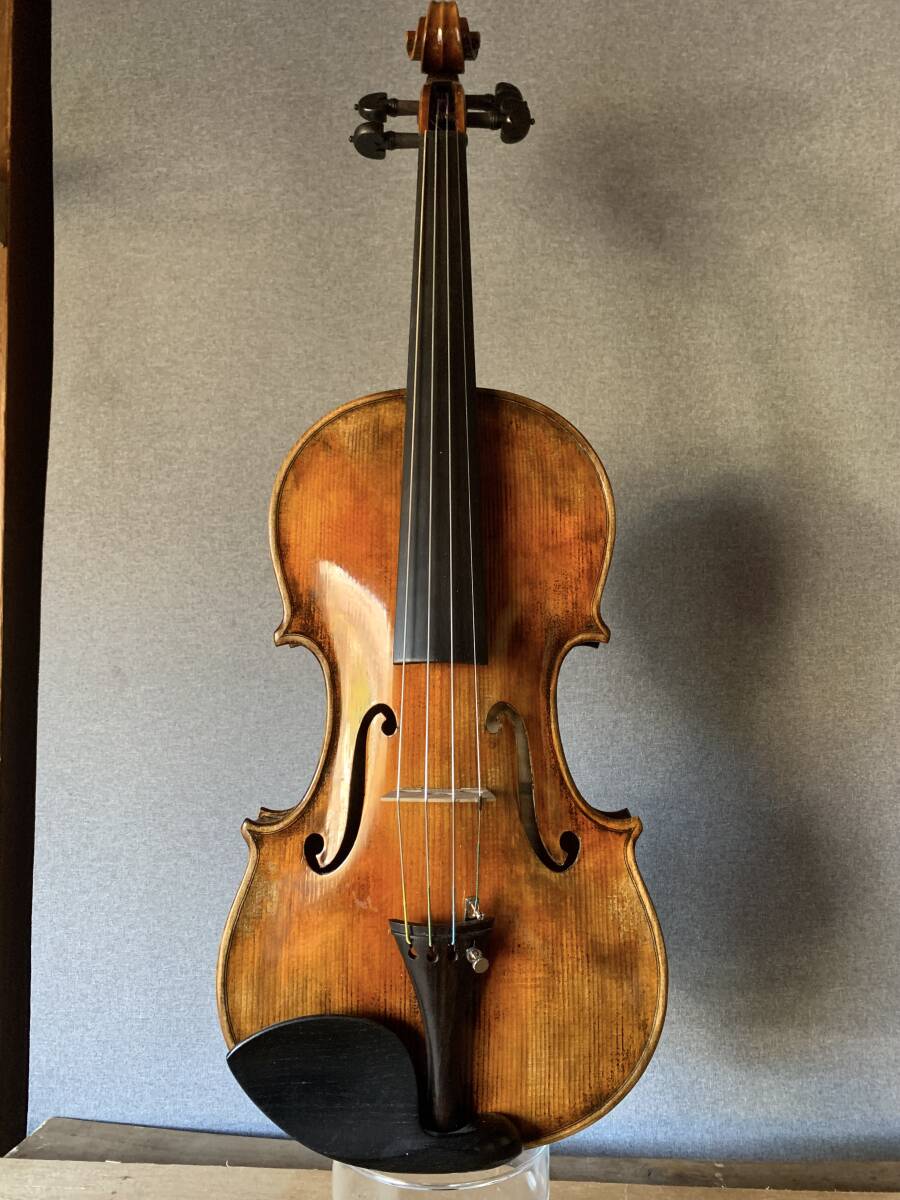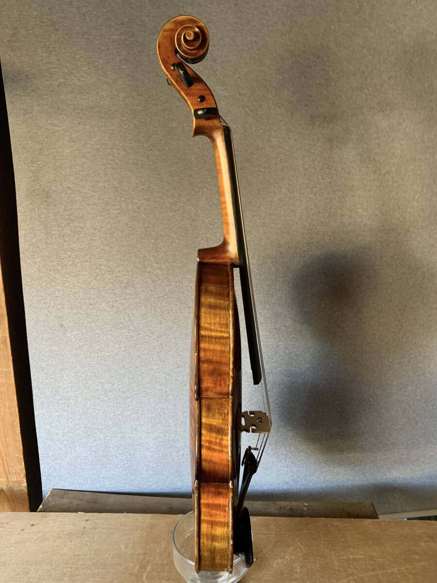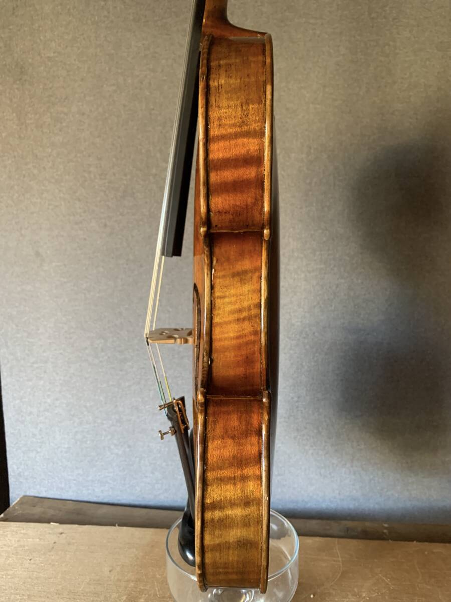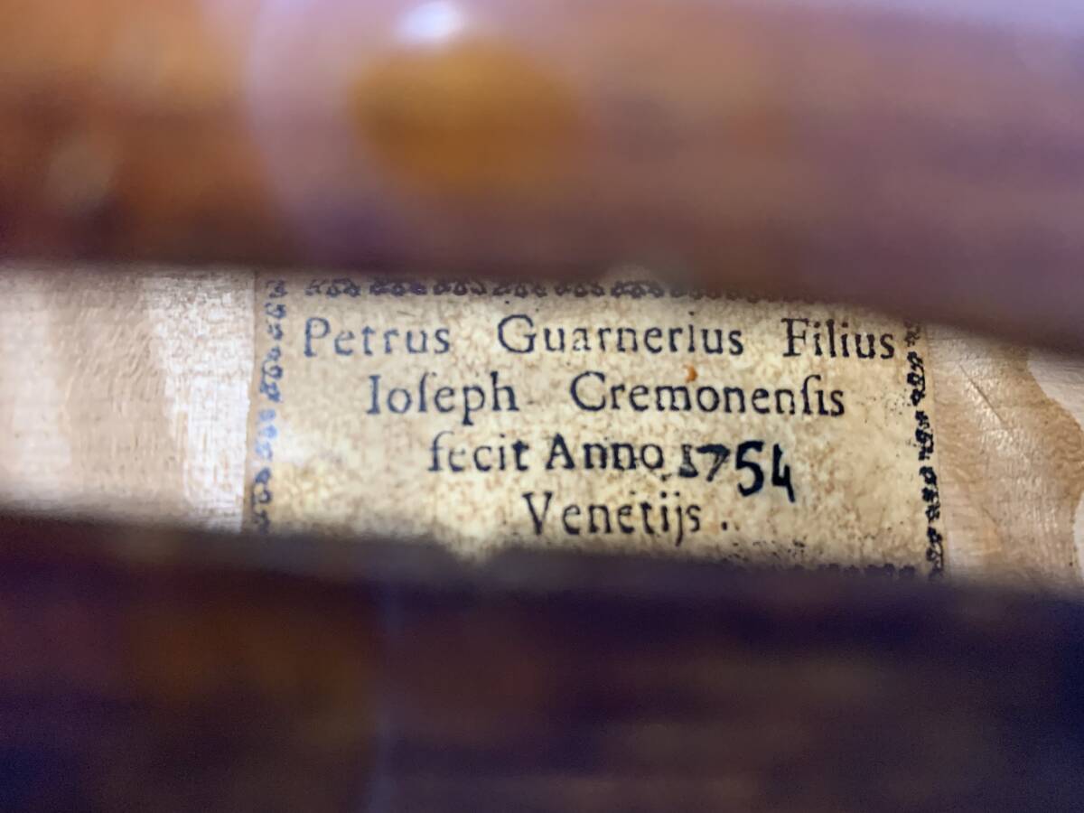 ジュゼッペ・グァルネリ・フィリウス・アンドレアの息子ピエトロ・グァルネリ(ヴェネツィアのピエトロ)は、グァルネリ工房で約10年間の修行のあと、1717年頃に故郷クレモナを離れた。当時、ストラディヴァリの活躍によってグァルネリ家には十分な仕事がなく、ヴァイオリン製作で成功するのであれば、新天地を見つける必要があった。多くのヴァイオリン製作家がひしめく音楽の町、ヴェネツィアへの移住は、勇気ある行動であったといえるが、クレモナ・グァルネリ家の名声は彼の独立を助けたであろう。バイオリンの仕様: 4/4サイズ、古いですが状態の良いバイオリンを出品します。調節済みですぐに演奏可能です。クラックはありません。 美しく深い音色、イタリアの卓越した弦楽器製造者による音質。 大変良く調整されており、4弦のバランスと迫力ある音量に驚かされます。温かな響きと伸びのある美しい音色をもっており、演奏が楽に感じられる楽器です。 表板:良質なスプルース。 側板:裏板と同じ材質のメープル 指板・テールピース・ペグ:黒檀 長さ:354  mm / Upper bout 168 mm / middle bout 112 mm / lower bout 206 mm / string 328 mm-