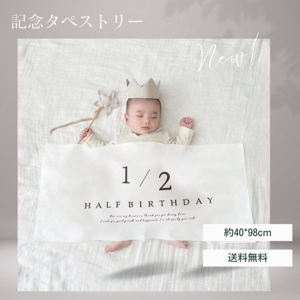 タペストリー ベビー 記念写真 壁面 お食い初め ハーフバースデー 1/2