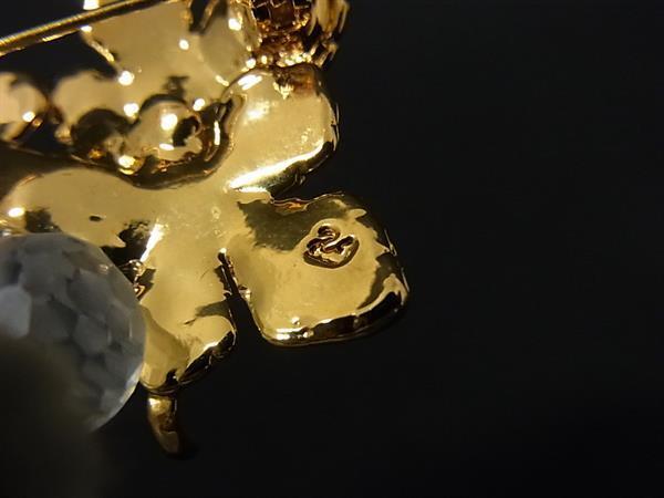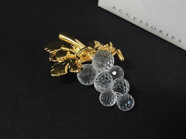 ■美品■ SWAROVSKI スワロフスキー グレープ ぶどう 葡萄 ピンバッジ ピンブローチ アクセサリー ゴールド系×クリア DK6425