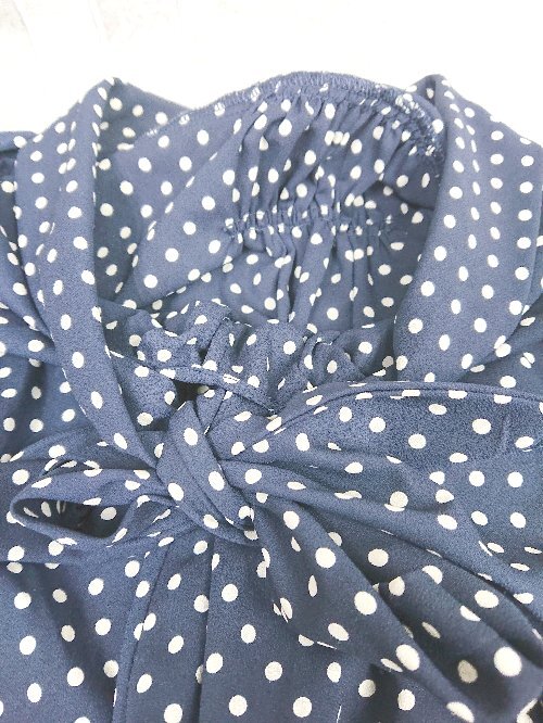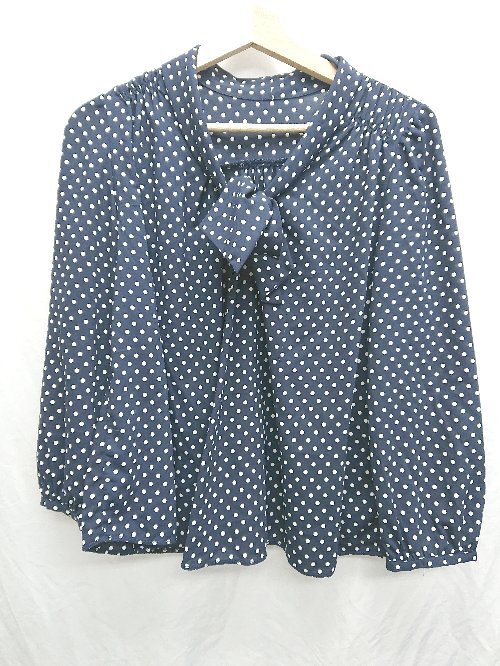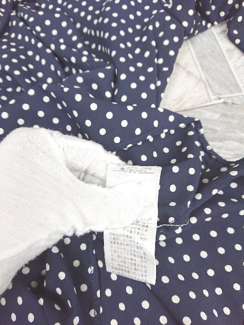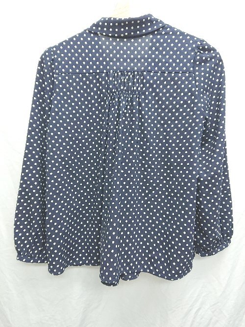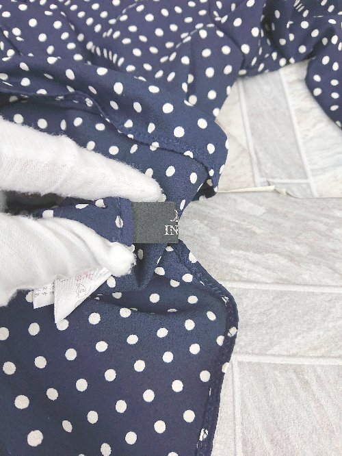 ◇ INED イネド ドット 水玉 七分袖 ブラウス サイズ9 ネイビー ホワイト レディース P