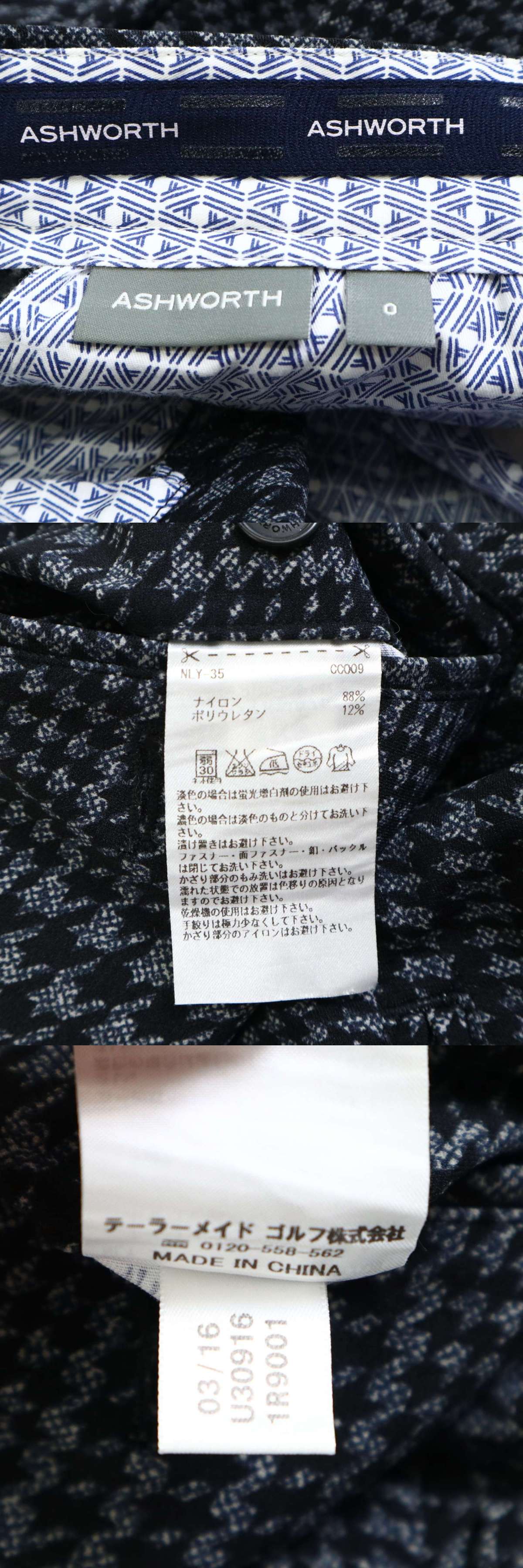 ASHWORTH アシュワース ゴルフ 通年 ロゴ刺繍★ ストレッチ チェック 千鳥柄 スラックス パンツ Sz.O メンズ 大きいサイズ
