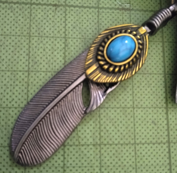 ★ フェザーモチーフにターコイズ風の装飾が施された、重厚感のあるアンティーク調キーホルダーです。