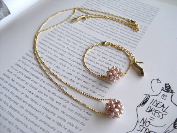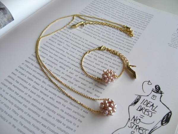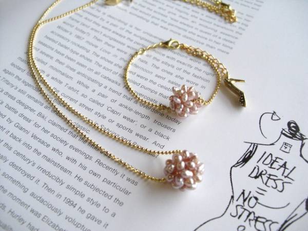 巴里色デッサン・・シリーズです♪休日のパール・・シックなモーヴ・ピンクの淡水パールのネックレスとブレスレットの2点セットです♪甘すぎないピンクの淡水パールの編み玉が可憐な表情です♪ネックレスは華奢なカットボールチェーンに16ミリ位の編み玉パールを合わせました♪長さは60センチ+アジャスター12センチで最長72センチ位です♪ブレスレットは13ミリ位の編みパールを合わせました♪長さは16センチ+アジャスター6センチで最長22センチ位です♪それぞれ単品やピアスも出品しています♪シンプルで飽きのこないいつまでも着けられるデザインを考えて作りました!ハンドメイドをご理解頂いてノークレーム、ノーリターンでお願いします |