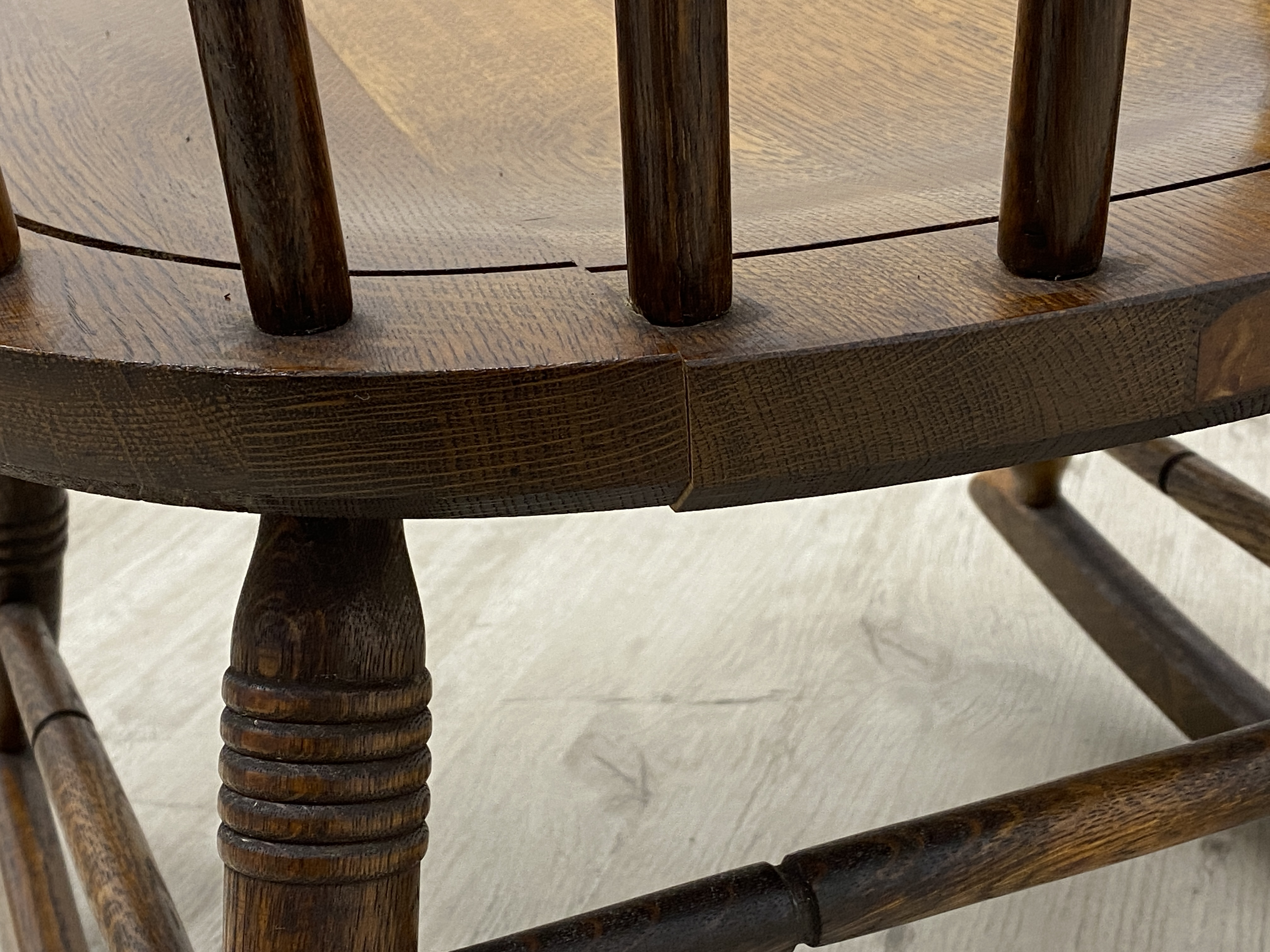 この度は弊社の出品物をご覧いただきありがとうございます! こちらは、飛騨産業 ロッキングチェア です。 中古品となります。 【飛騨産業】 飛騨産業は『キツツキ』のマークで大変有名な、飛騨高山にある日本を代表する家具メーカー。 1920年に創業、しかしその歴史は遥か平安時代にまで遡ることができます。 かつて、都づくりのために木工職人が派遣されていた地域で、1000年以上に渡り木材や建築に携わってきました。 そんな、高山の地で生まれた飛騨産業は、飛騨古来の豊かな自然が生み出す木材、 そして西洋の曲木技術を活かした家具が特徴的です。 天然木が生み出す自然の優しさ、曲木の高い技術によって末永く使えるデザインが大変に魅力的なメーカーです。 そんな飛騨産業より、ロッキングチェアのご紹介です。 ハイバックでゆったりとくつろげるデザインが特徴です。 オーク材の堅牢な作りと、飽きのこないカントリーデザイン。 脚部はろくろを使って丁寧に削られた『挽物』が施されており、エレガントで重厚なアクセントをプラスしています。 読書やリラックスタイムに最適なお品物となっております。 【コンディションについて】 コンディションにつきましては、以下の画像も併せてご参照ください。 【座面ヒビ割れ(接着剤で補強済み)】 【左手側ひじ掛け接合部隙間あり】 使用感に伴い、画像のようなひび割れや隙間があり、弊社にて接着剤による補強を行っております。 左手側のひじ掛けが多少緩んでいますので、ご使用の際は十分にお気をつけください。 どうぞこの機会にいかがでしょうか! 皆様のご入札をお待ちしております。 再良市場の他のお品物はこちらから!