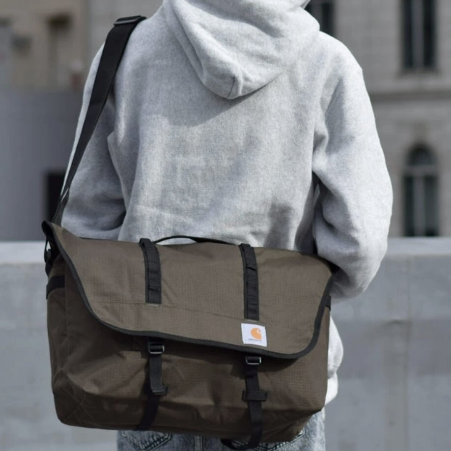 人気ブランド『Carhartt』の、カーハートのメッセンジャーバッグです。整理整頓できる大きなメインコンパートメント、後ろ側には2つのメッシュジッパー式ポケットがついている収納力に優れた造りになっています。