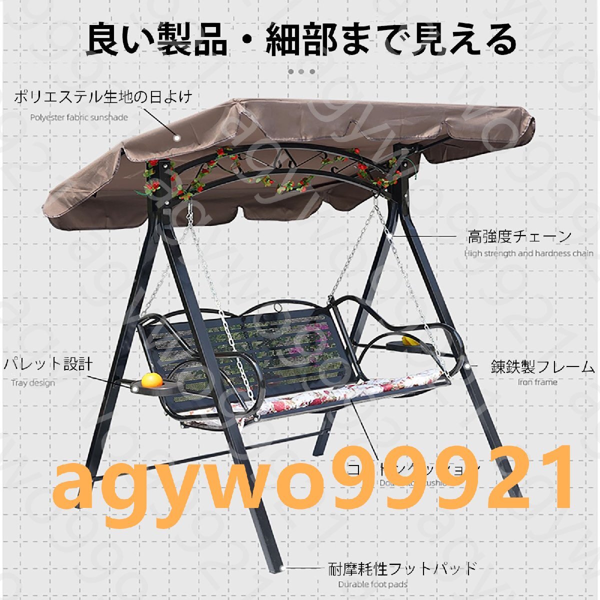 製品詳細:製品名: ガーデンブランコ製品仕様: 115*139*155cm製品の材質:鉄製品の色: 黒/白適用スペース:庭園、パティオ、ポーチ、デッキ、芝生、裏庭、その他の広々とした場所。特徴:1.デザインはシンプルでファッショナブルで美しいです。2. 広々としたシートで複数人での乗車に便利です。3.多層ベーキングプロセスにより、ペイントは長期間明るい質感を維持します。4. A 型デザイン、より安定。5. 丁寧な研磨で肌や衣類を傷つけません。6.鉄製なので耐荷重性が保証されています。7. 幅広い用途・シーンに対応ガーデンスイングスイングは、高品質の鉄製の金属フレーム構造、A字型のデザインを採用し、材料の投入量を増やし、安全性能を向上させています。4層のベーキングプロセスは安全で安定しており、強力なサポートがあり、耐食性があり、耐摩耗性があります。耐久性があり、耐久性があり、耐久性があります。 スイングブラケットは防錆ネジで接続されており、構造は安全で安定しており、接続はより強力で、耐荷重能力は200kgに達します。 調節可能な屋根のデザインにより、日よけや雨から守る角度を自由に調整でき、より安心して使用できます。高強度のチェーンとフックにより、使用中の安全性を確保します。ウォーターカップホルダーまたは屋根付きのスタイルを選択できます。快適な使用感。 傾斜した椅子の背もたれのデザインは背中に完全にフィットし、乗り心地がより快適になります。高品質のハードウェアに接続されており、耐荷重性が保証されており、使用中に滑りにくいです。ユニークな金属パターンのデザインは美しくてファッショナブルです。 このブランコは組み立てが簡単です。 製品のサイズが大きいため、大人2人で組み立てることをお勧めします。すべての部品を組み立てたら、すべてのネジを締めてください。パティオでリラックスできます。 人生を最大限に楽しむことができます。 庭園、パティオ、ポーチ、デッキ、芝生、裏庭、広々としたリビングスペースなど、屋内外での使用に最適です。 3人の体重を支えることができ、非常に汎用性の高いスイングチェアは、子供から大人までさまざまな年齢に適応でき、家族関係の発展を促進できます。