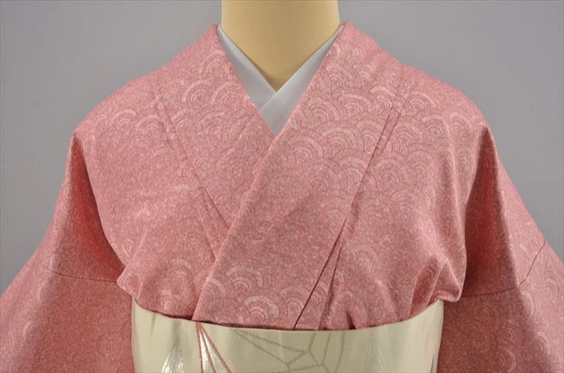 レトロな一方付け青海波模様のプレタ化繊の洗える着物です。