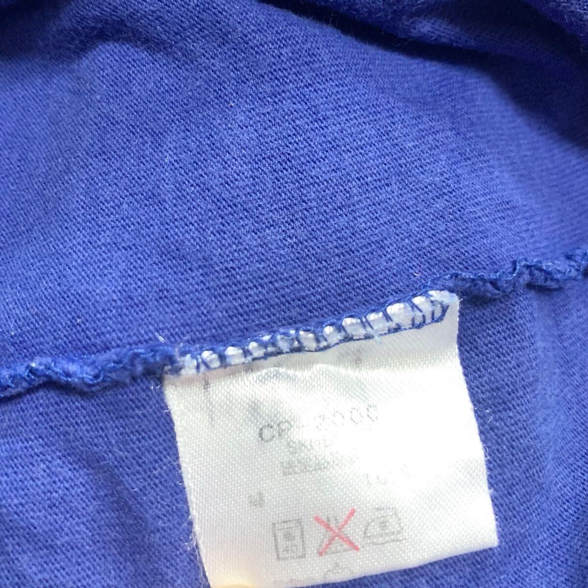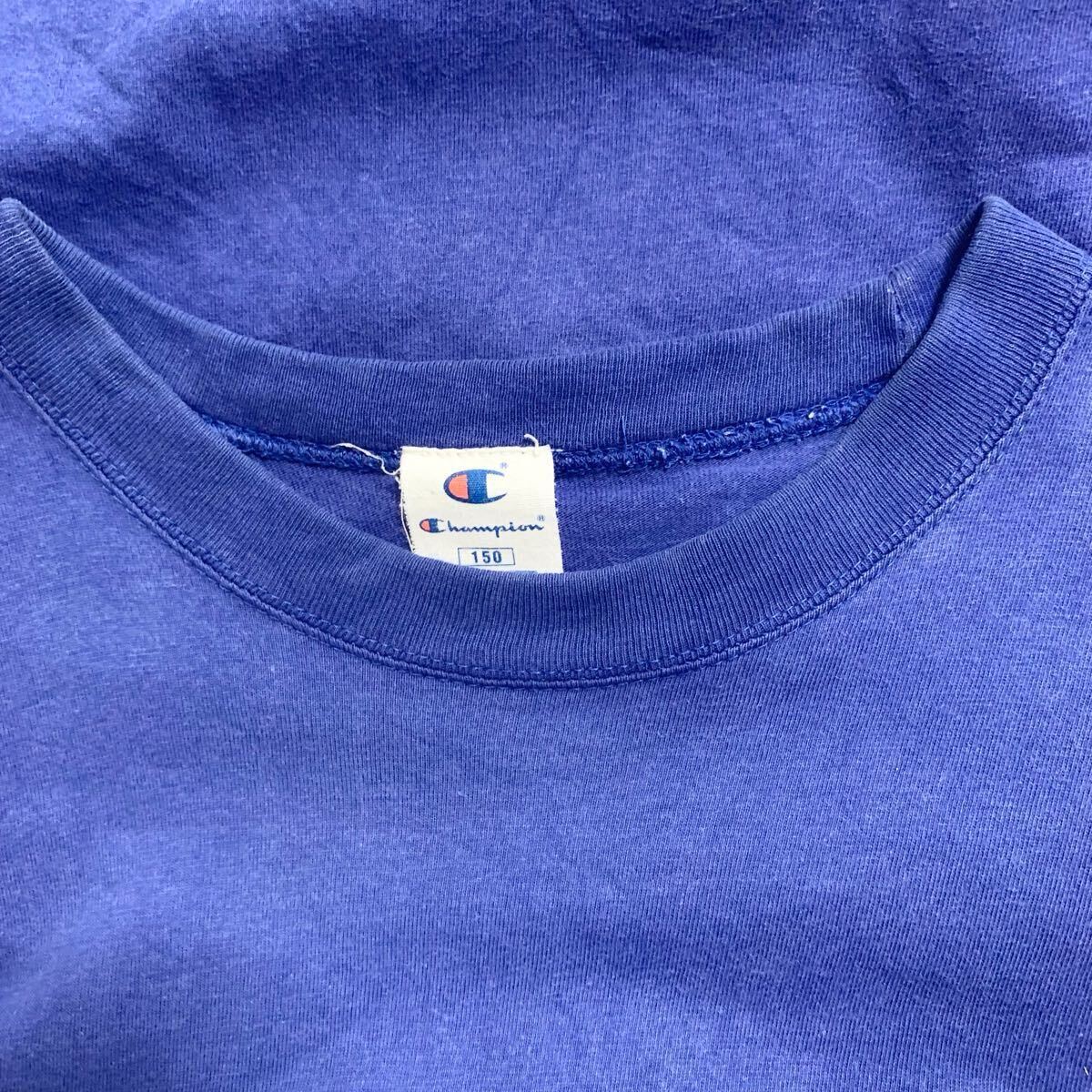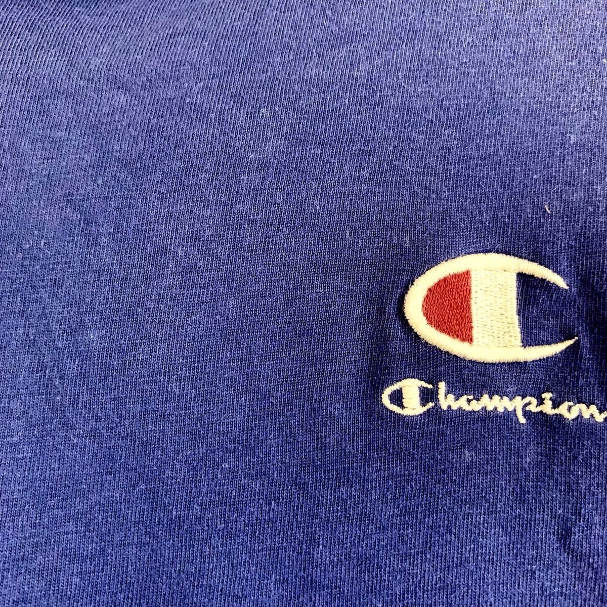 ごくシンプルな、Champion(チャンピオン)の青色無地Tシャツ。