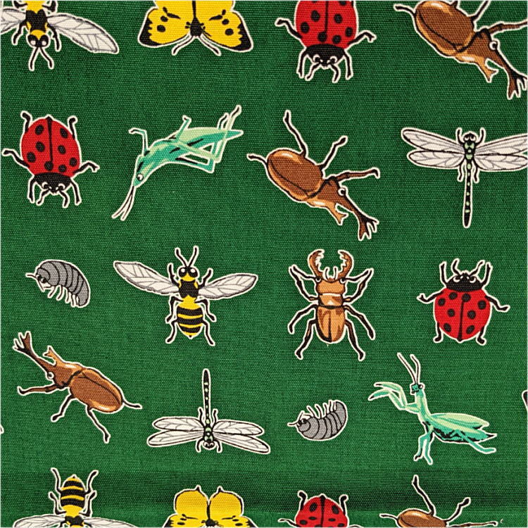 はし袋・大(25cm×6cm)【昆虫柄 グリーン】箸袋 箸入れ はし入れ マイ箸 細長巾着 給食 日本製 カブト虫 クワガタ トンボ カマキリ バッタ