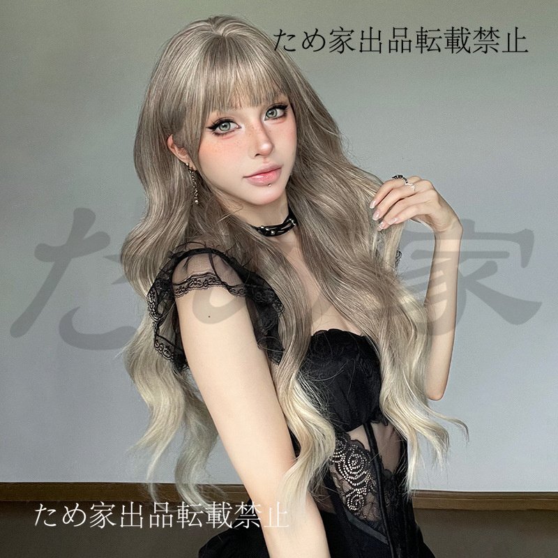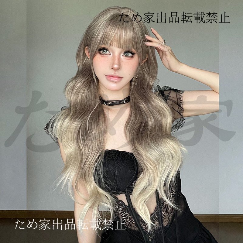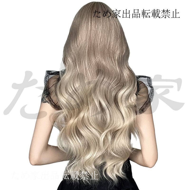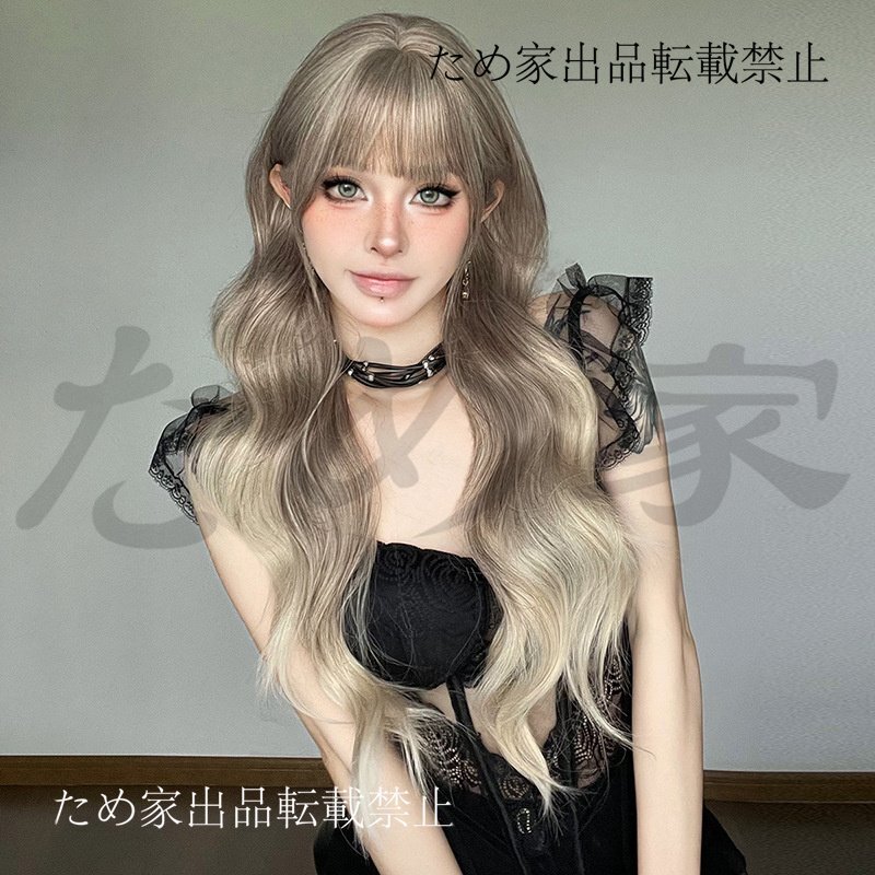 新品人毛 大波ロング巻き髪ウィッグ 海×ミルクティーブラウンフェード 優しい雰囲気 つむじ部分手植え 自然に見えますフルウィッグ