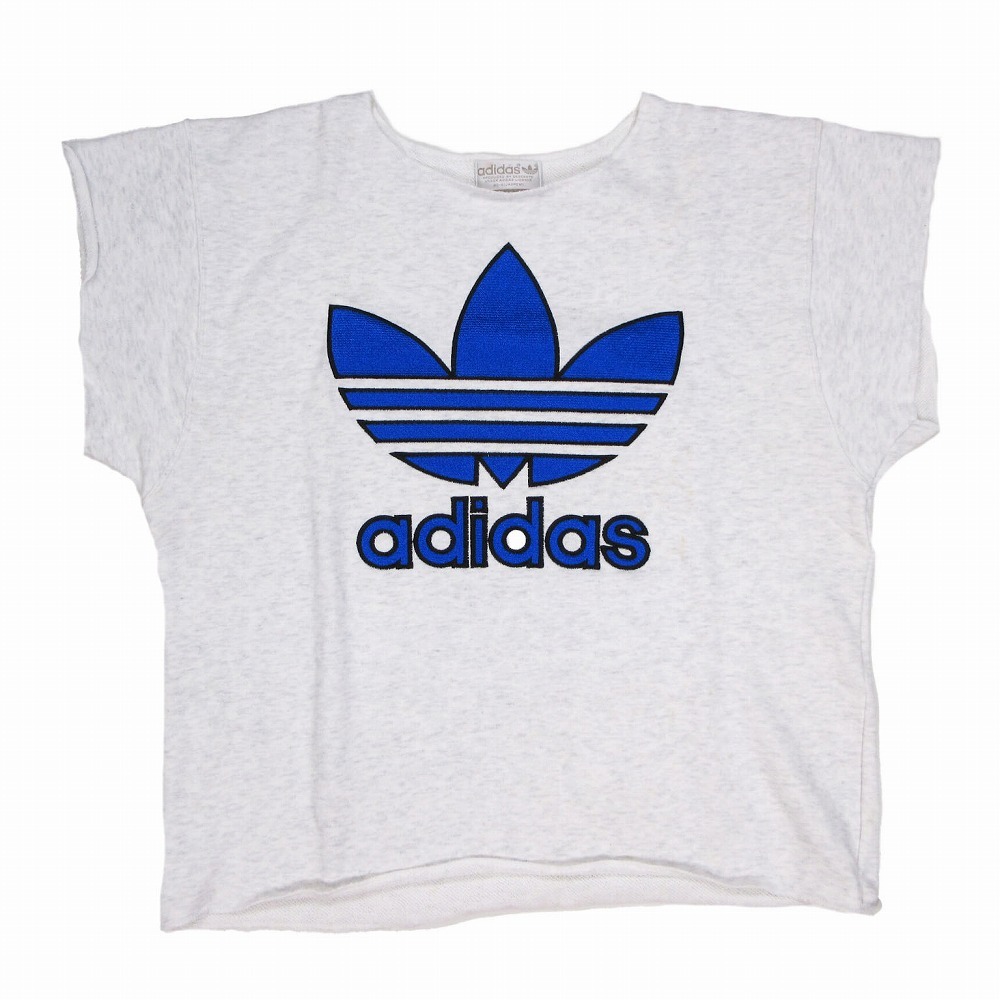 【ヴィンテージ 80s アディダス adidas BIG トレフォイル ロゴ 半袖 スウェット トレーナー ボートネック M ホワイト ur25】 | |