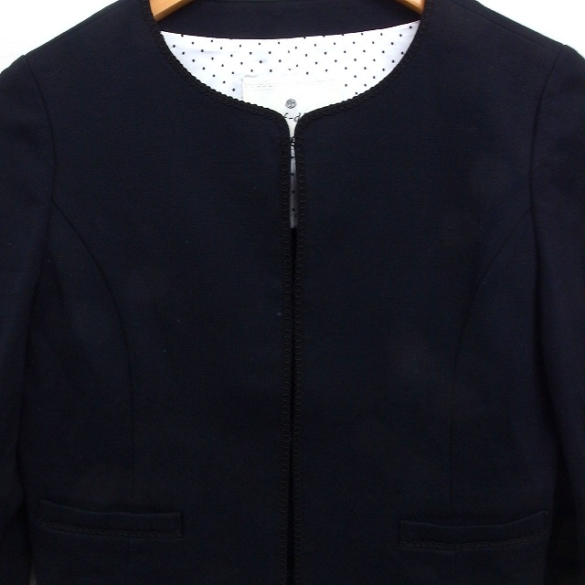 エフデ ef-de ノーカラージャケット ブレード セレモニー 無地 コットン 綿 9 ネイビー 紺 /FT20 レディース