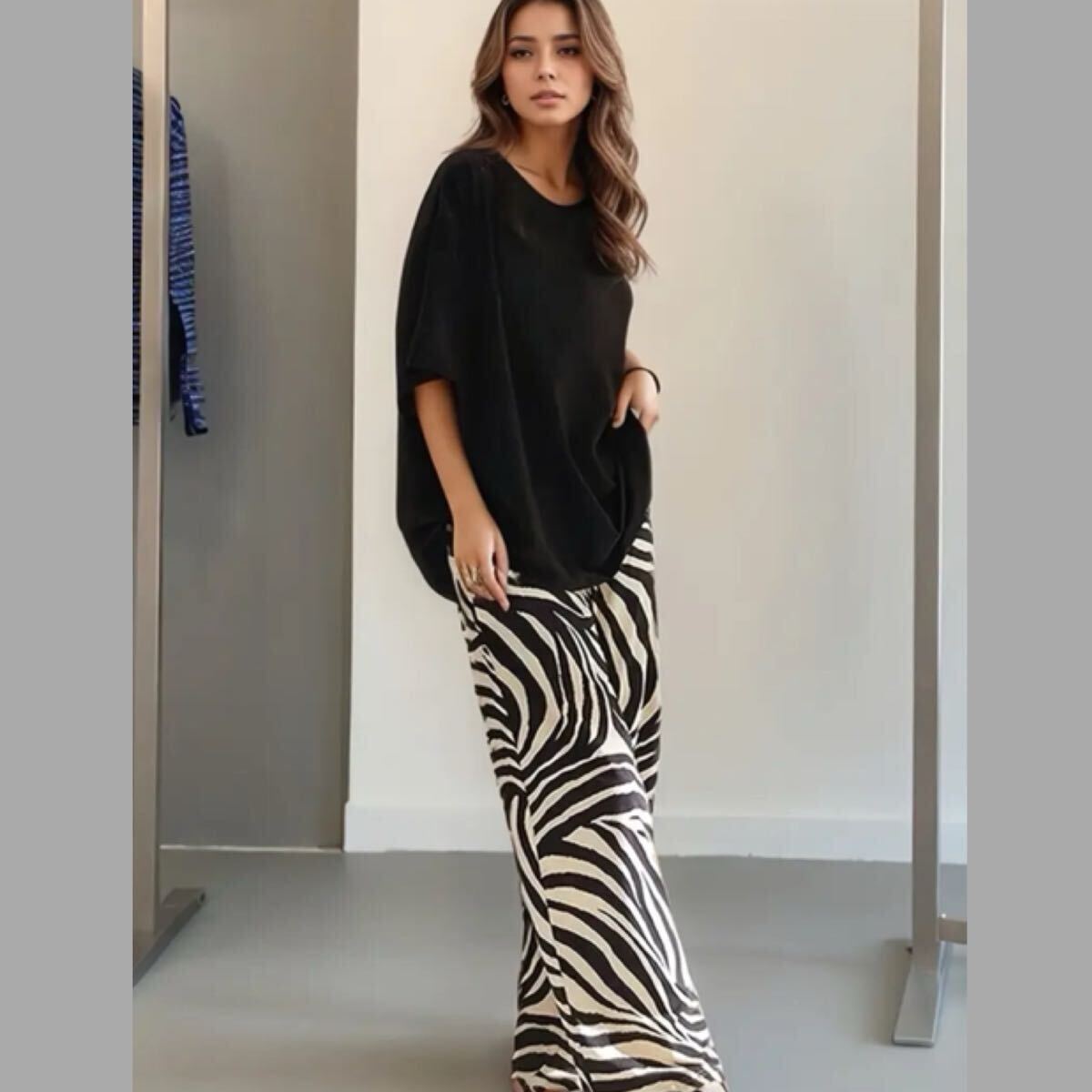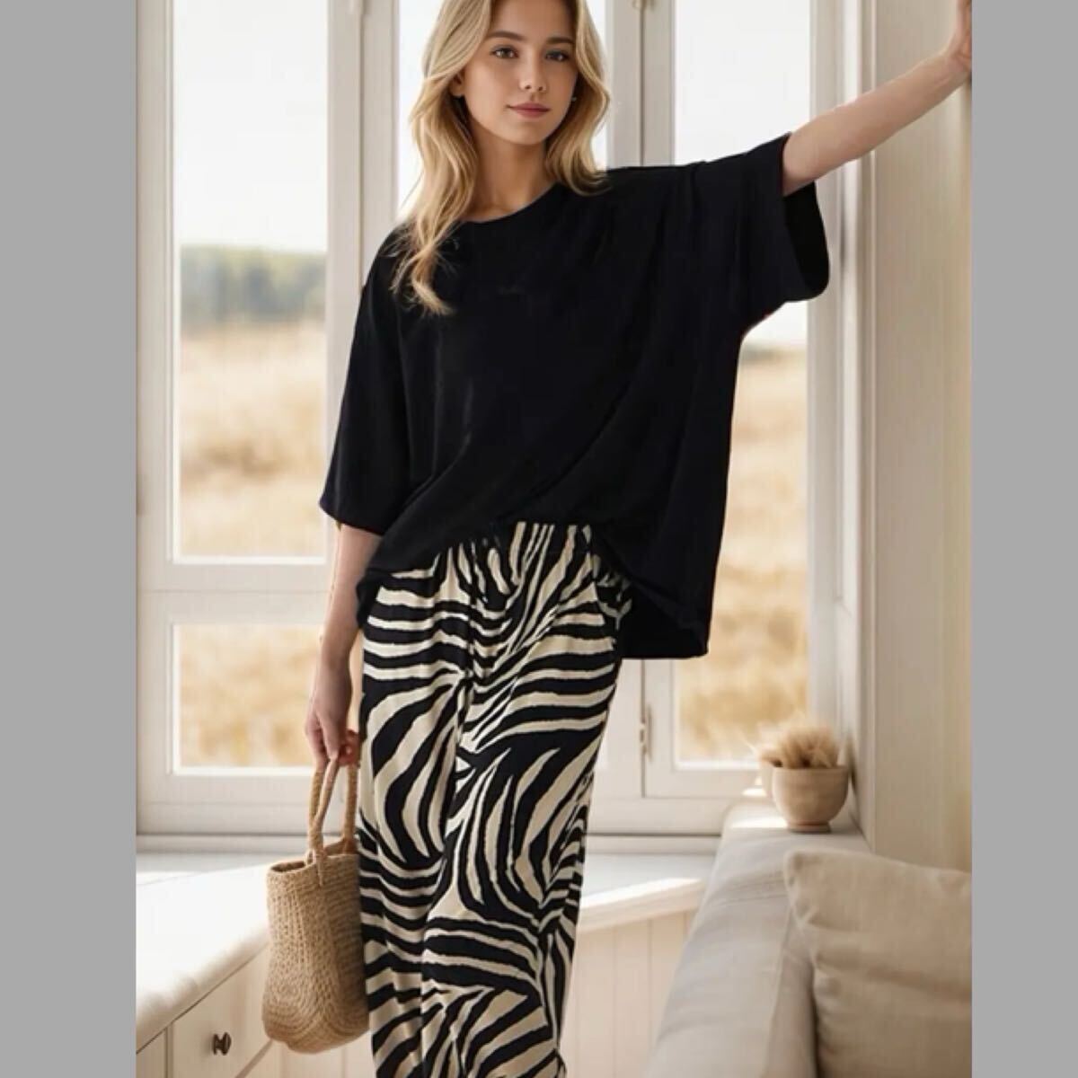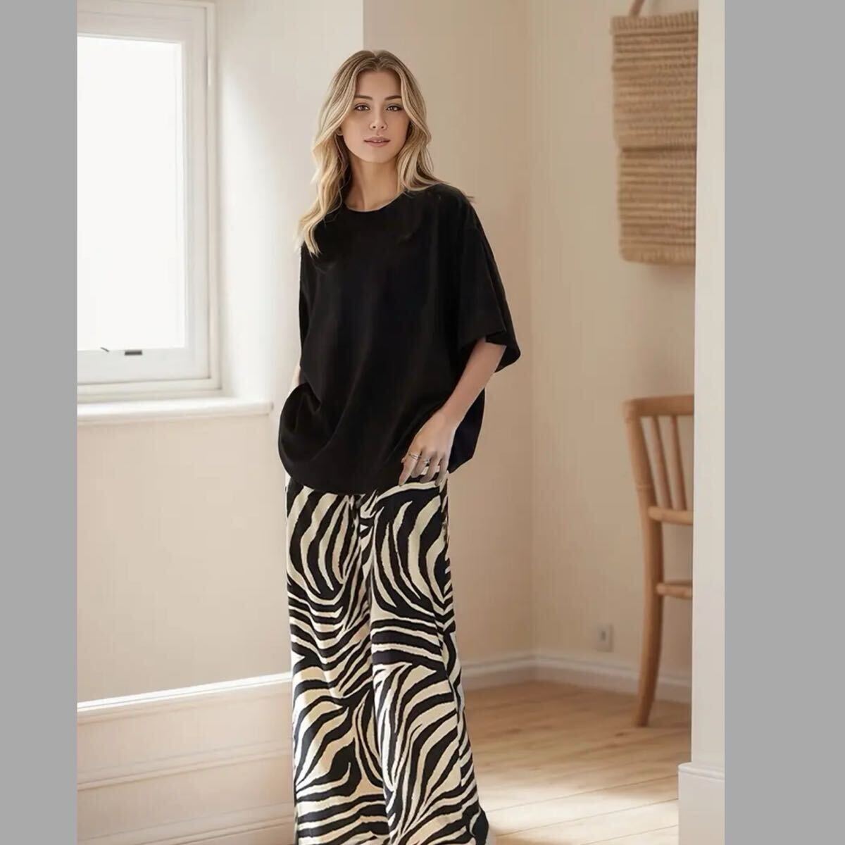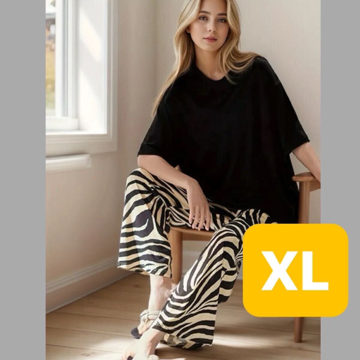 春夏用 レディース パジャマ カジュアル 半袖 ロングパンツ セット ゼブラ プリント 高級 ホームウェア ツーピース セットトレンド セレブ シック シンプル 素敵 上品な ルームウェア セットアップ エレガント