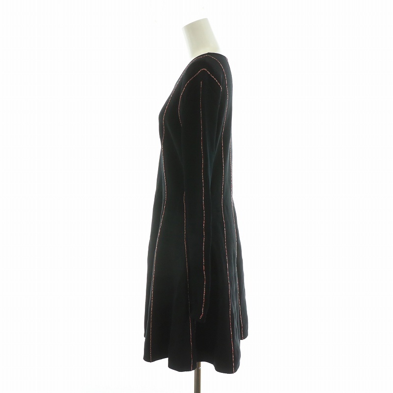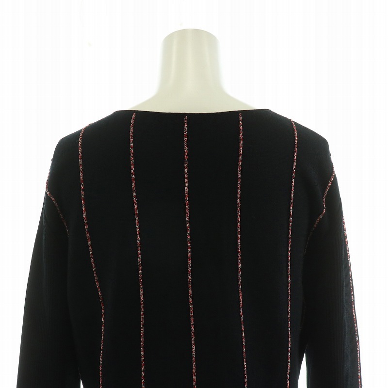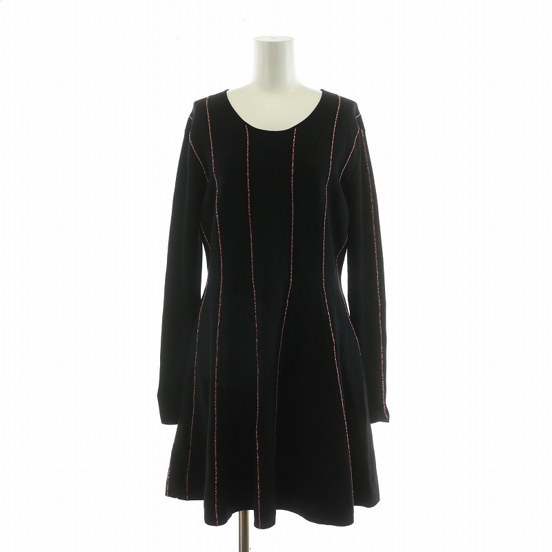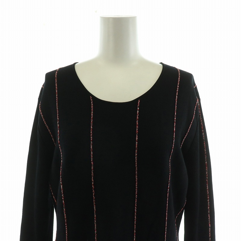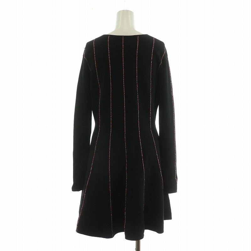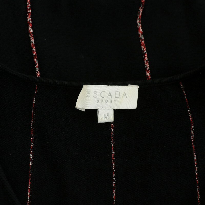 エスカーダ ESCADA ニットワンピース ミニ ストライプ 長袖 M ブラック レッド 5031213 /NQ レディース