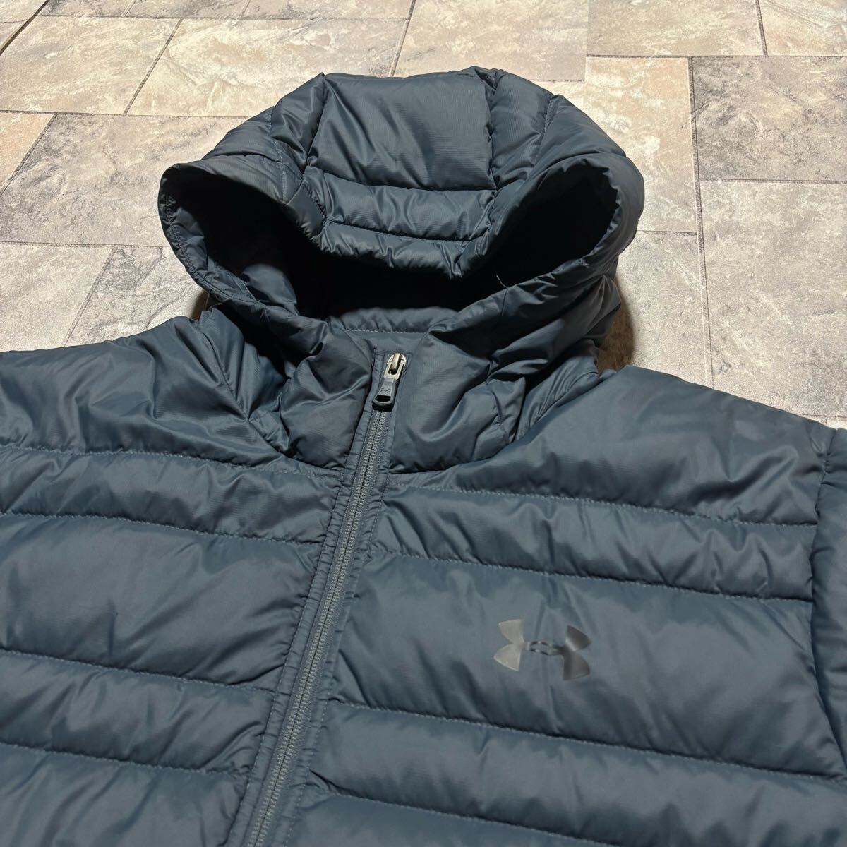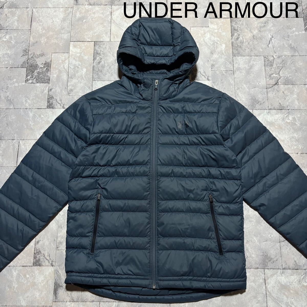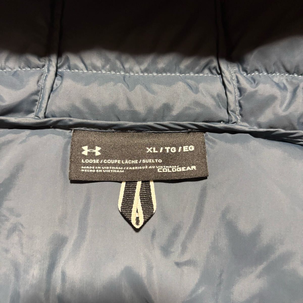 UNDER ARMOUR アンダーアーマー ダウンジャケット ナイロン ジップアップフード パーカー プリントロゴ USA企画 ブルー サイズXL 玉FS1797