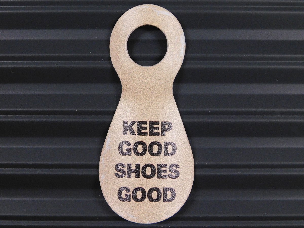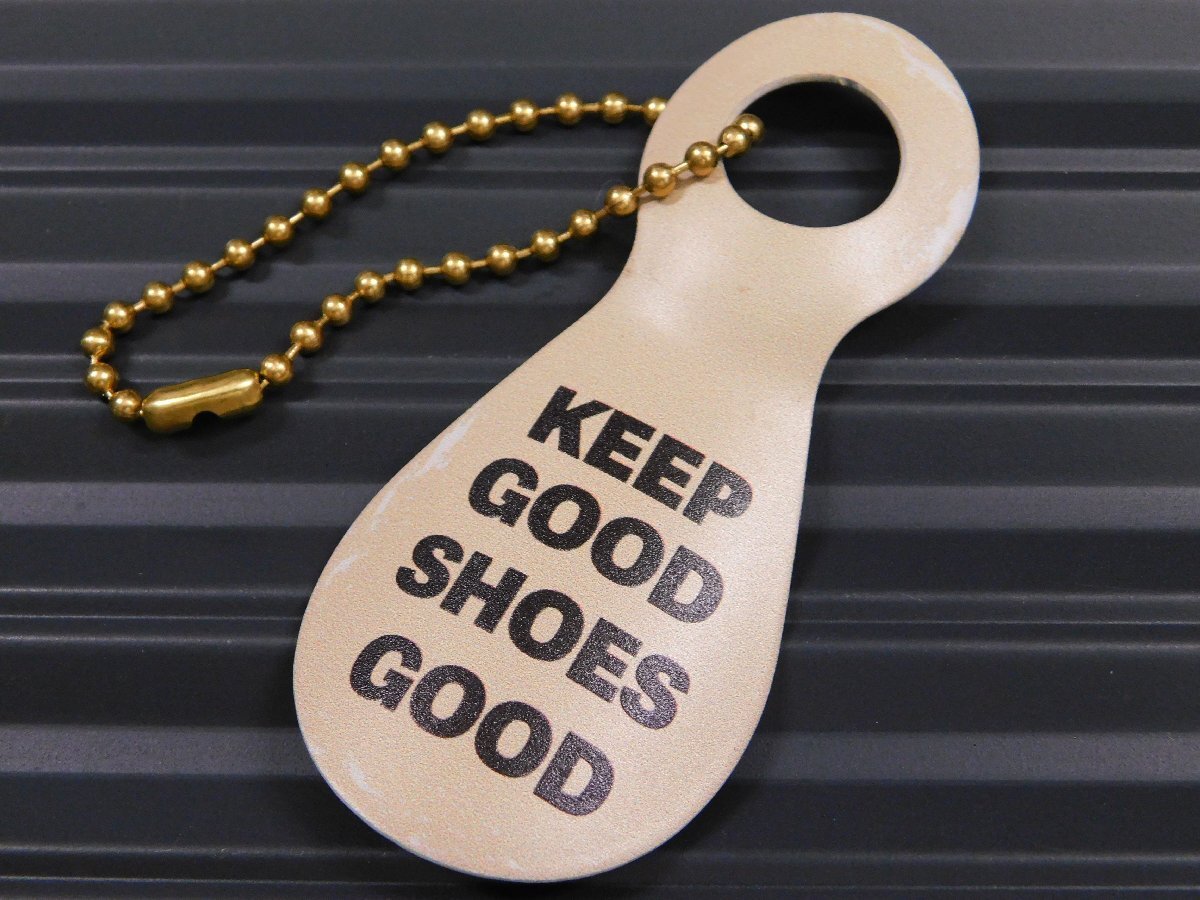 メタルボディーにカラーコーティングが施された、「シューホーンキーホルダー」です。