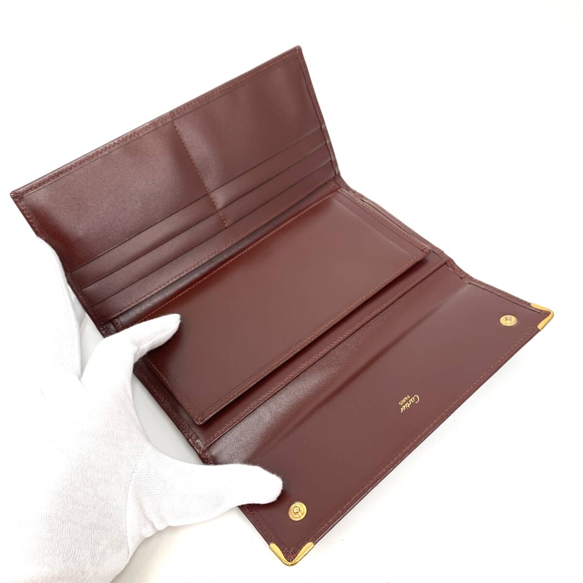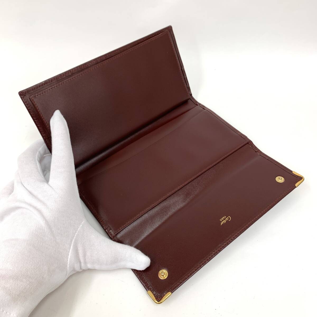 <状態> A <サイズ>縦10㎝×横19㎝ <収納> 札入れ×1 がま口小銭入れ×1 カードポケット×6 ポケット×5 <カラー>ボルドー <素材> レザー <付属品> なし 外側も内側も目立った傷や汚れなどなく綺麗な美品です。 全体的に綺麗な美品です。 詳しい状態は画像にてご確認ください。 色合いが光などで若干異なる場合がございます。 神経質な方は入札お控えください。 本物鑑定済み。 | |