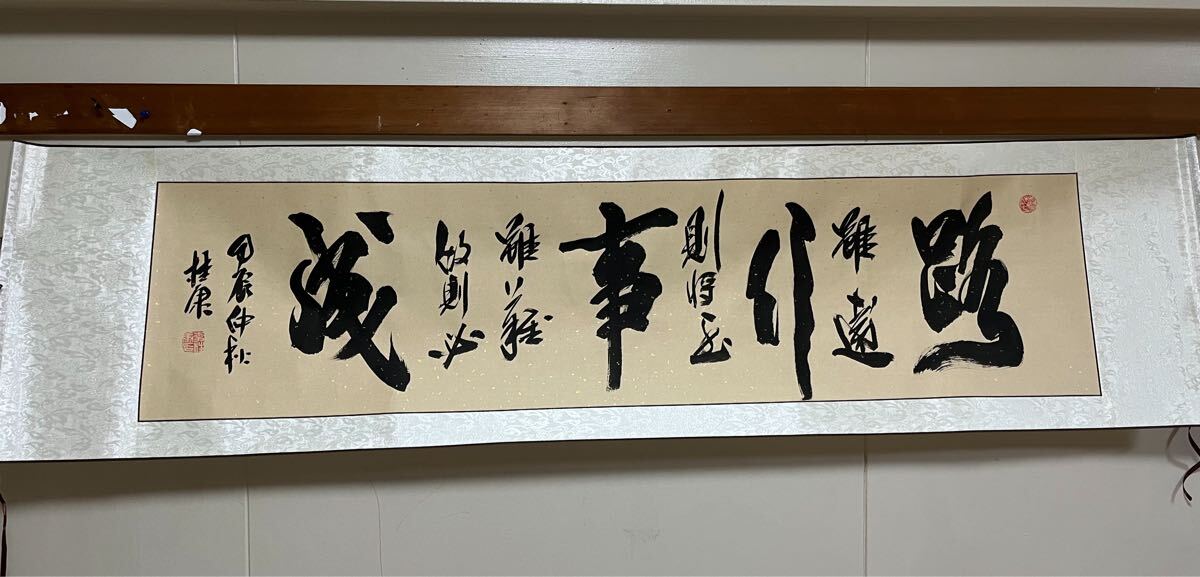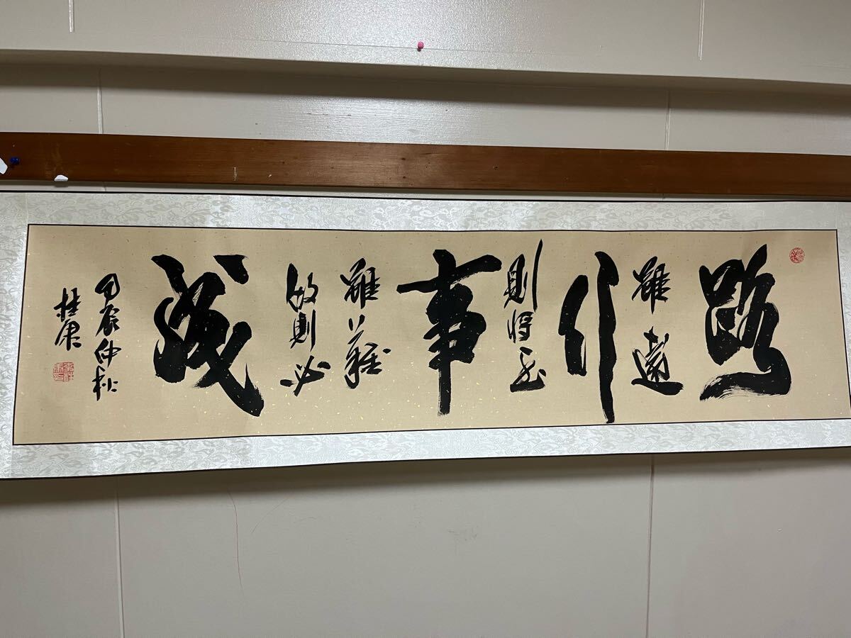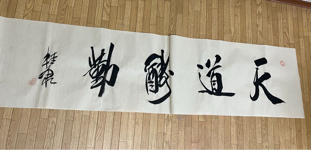 路雖遠 全体:縦43cm×横170cm本紙:縦32.5cm×横134cm 天道酬勤縦34.5×横148cmcm