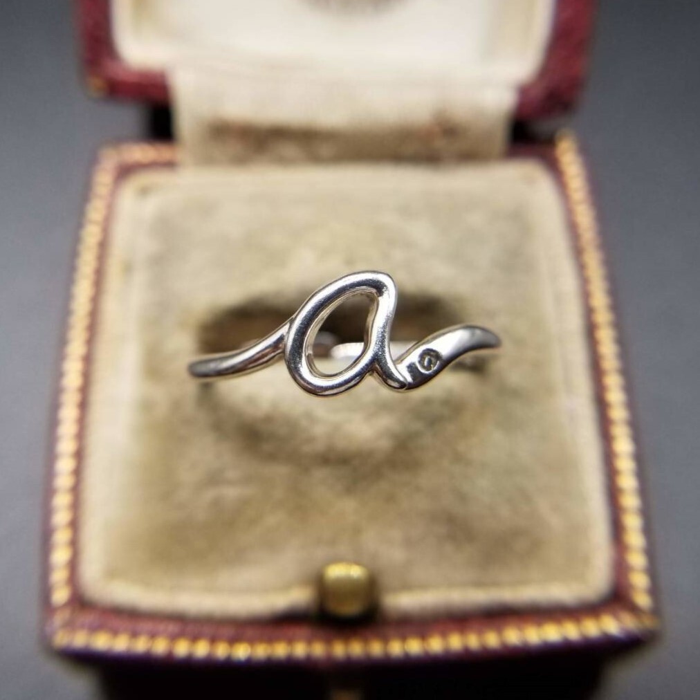 イニシャルレター a 細幅 オープンワーク 925 シルバー ヴィンテージ カフリング 銀 指輪 重ね付け Y6-N