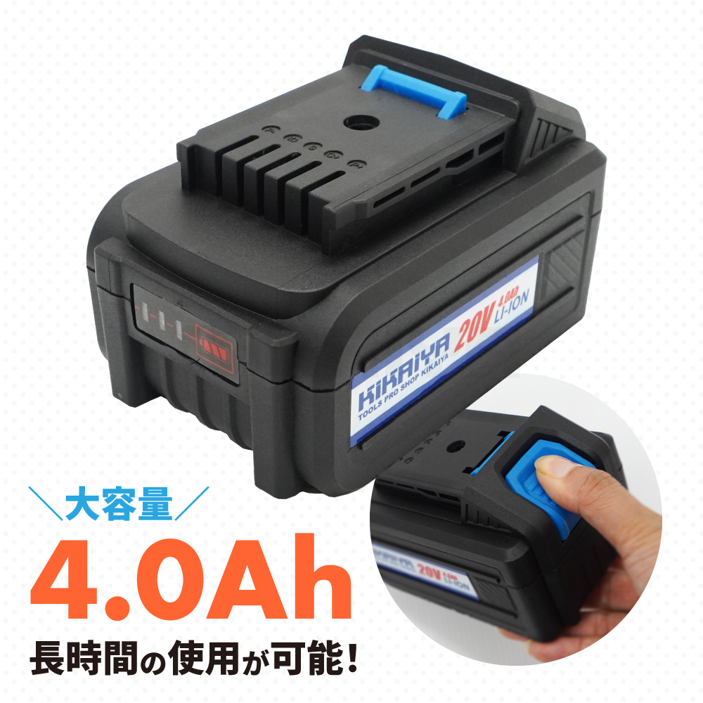 | 容量 | 4.0Ah(リチウムイオンバッテリー) |