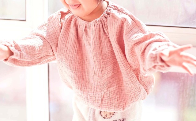 桜色/ピンク♪ キッズ服/子ども服【綿ガーゼ】ふわふわボリューム袖Tシャツ 120cm