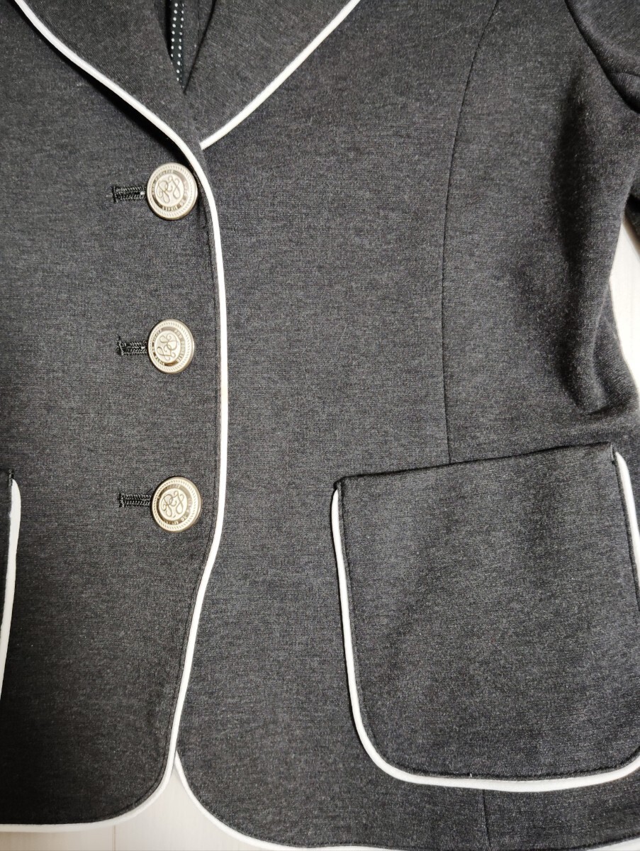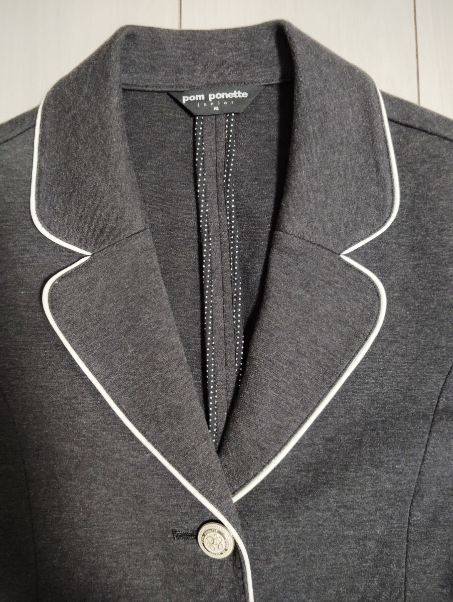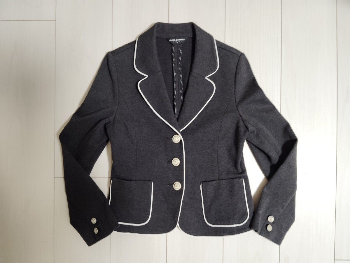 ポンポネットのジャケットです。サイズはMで150。お色は濃いグレー。特に大きな汚れはありませんが、子供が使用したものになりますので、自宅保管も含め気になる方のご入札はご遠慮願います。