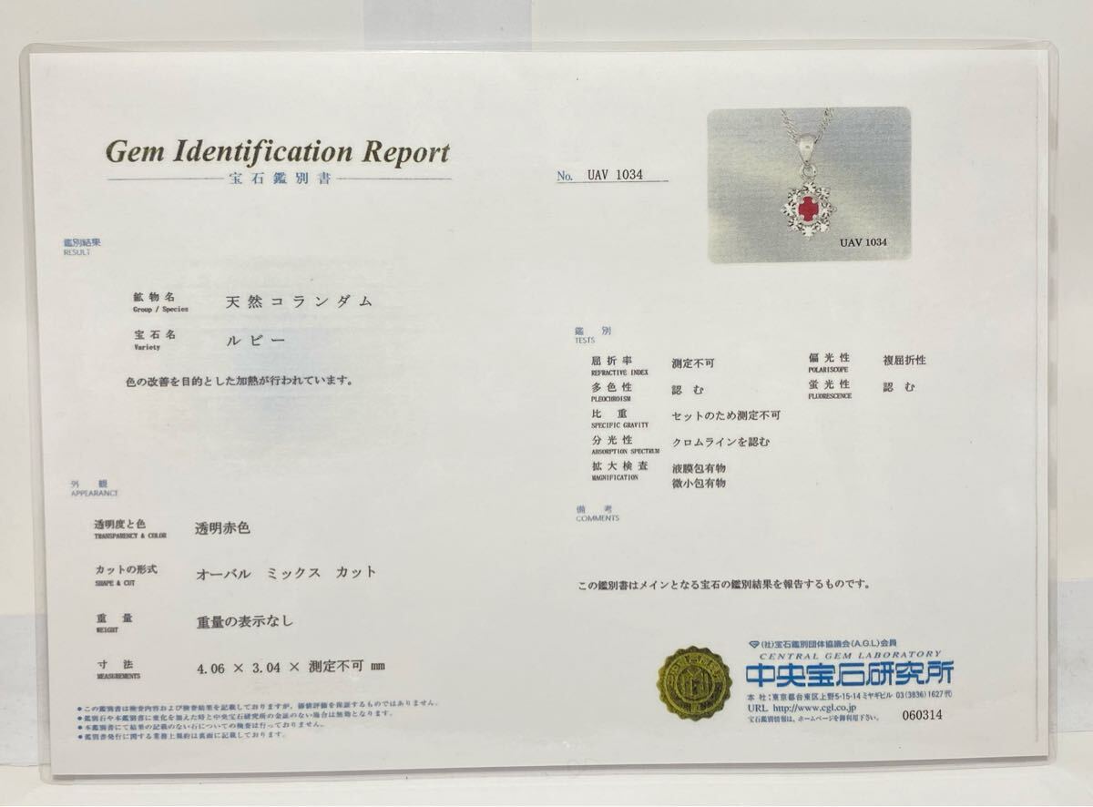 倉庫在庫処分! 天然ルビー(コランダム) ペンダント ネックレス 新品未使用品